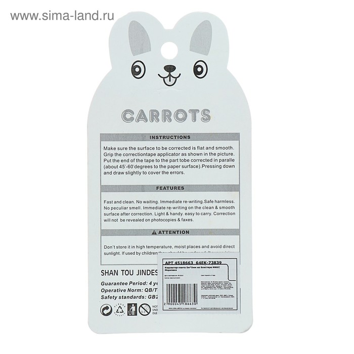 Корректор-лента «Морковка» 5 м × 5 мм, блистер, европодвес, корпус МИКС — Характеристики