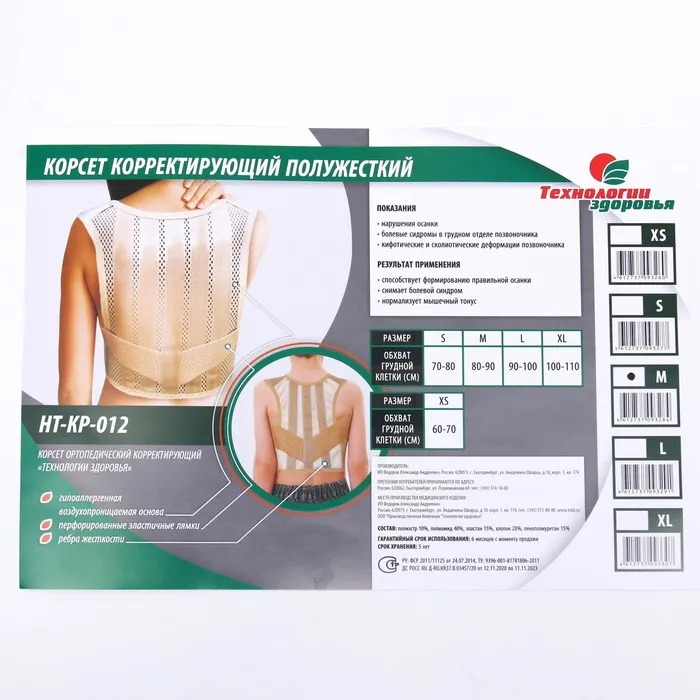 Корректор осанки НТ-КР-012, полужёсткий, 4 ребра, размер M, цвет бежевый — Характеристики