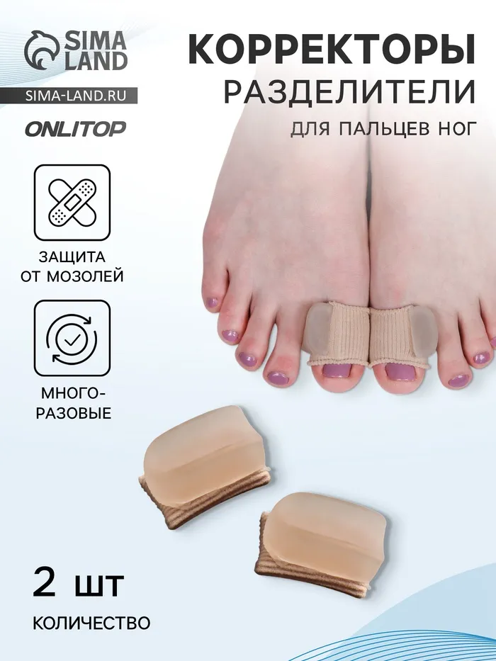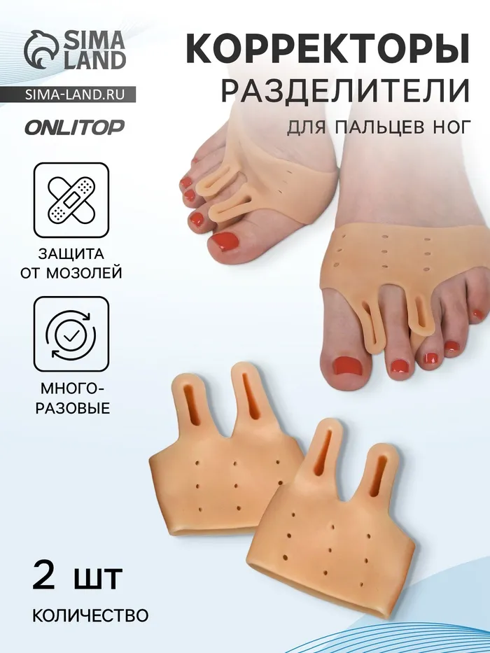 Корректоры - разделители для пальцев ног, 4 разделителя, силиконовые, 10×4 см, пара, белые — Характеристики