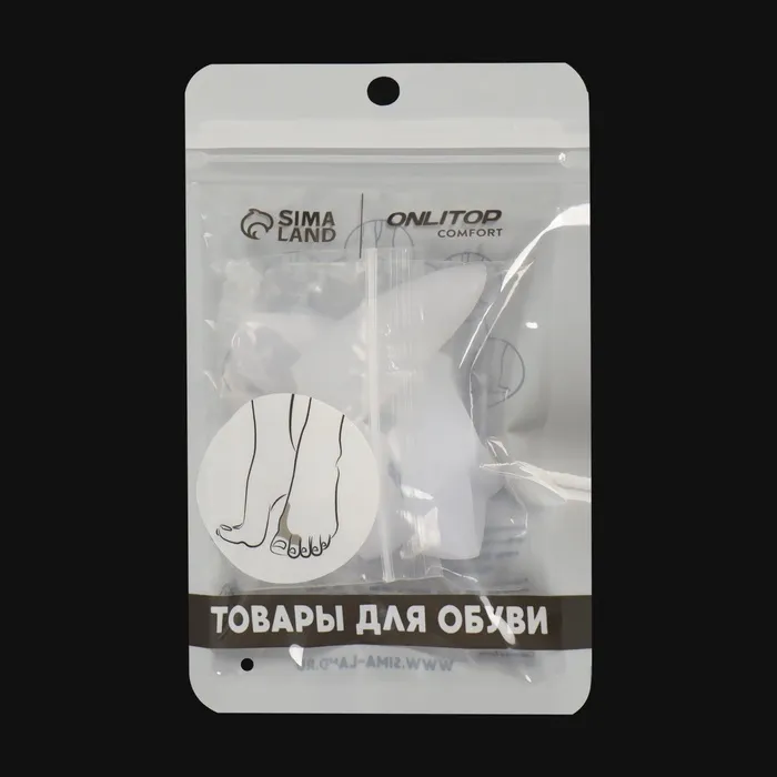 Корректоры - разделители для пальцев ног, с накладкой на косточку большого пальца, 1 разделитель, силиконовые, 9×4 см, пара, белые — Характеристики