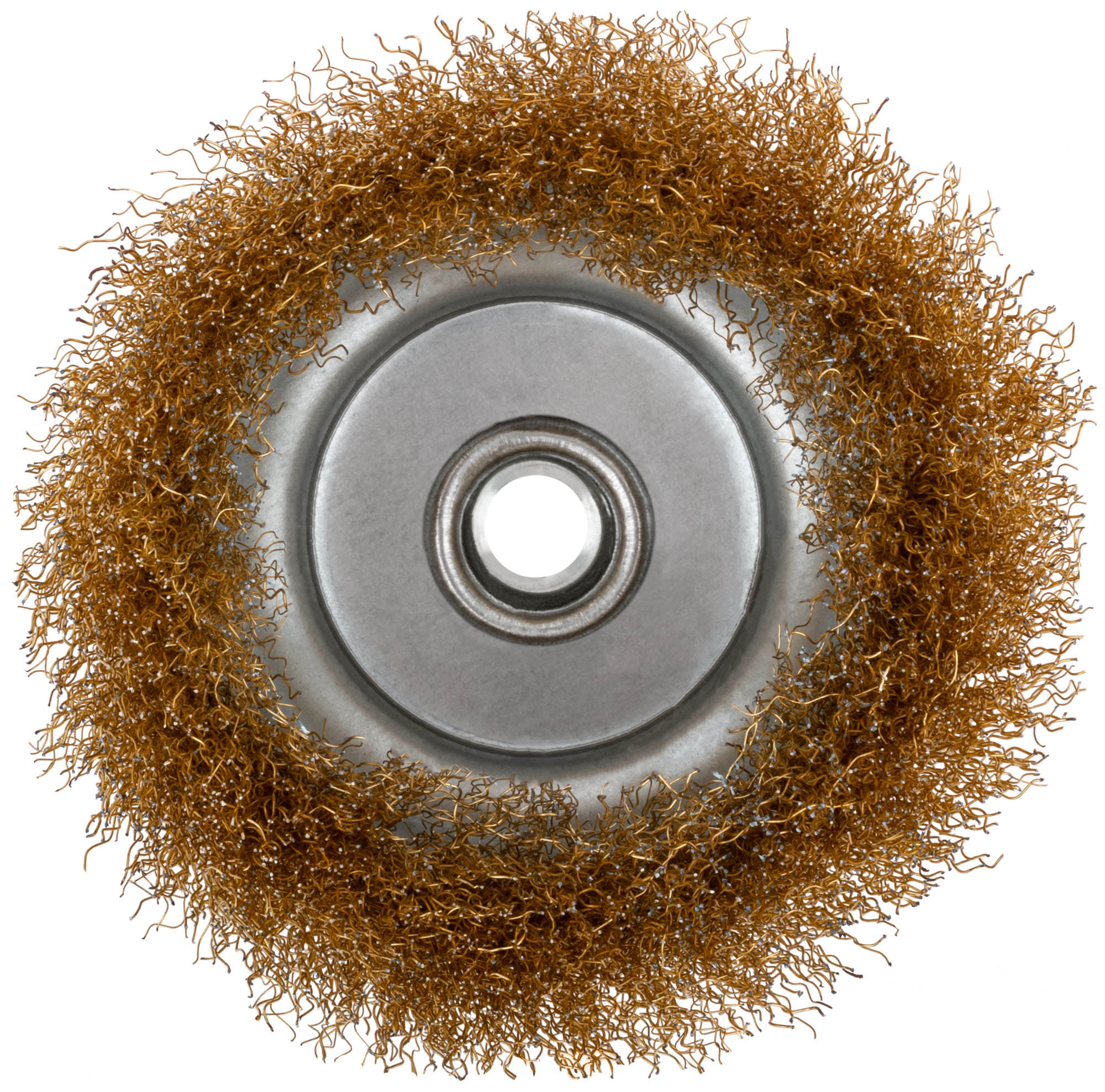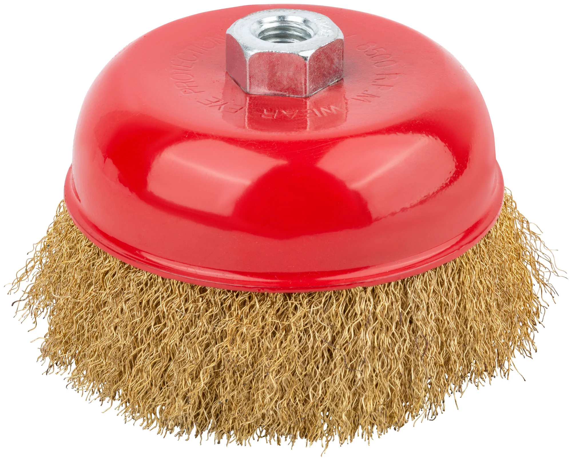 Корщетка чашечная, гайка М14, стальная латунированная волнистая проволока 125 мм