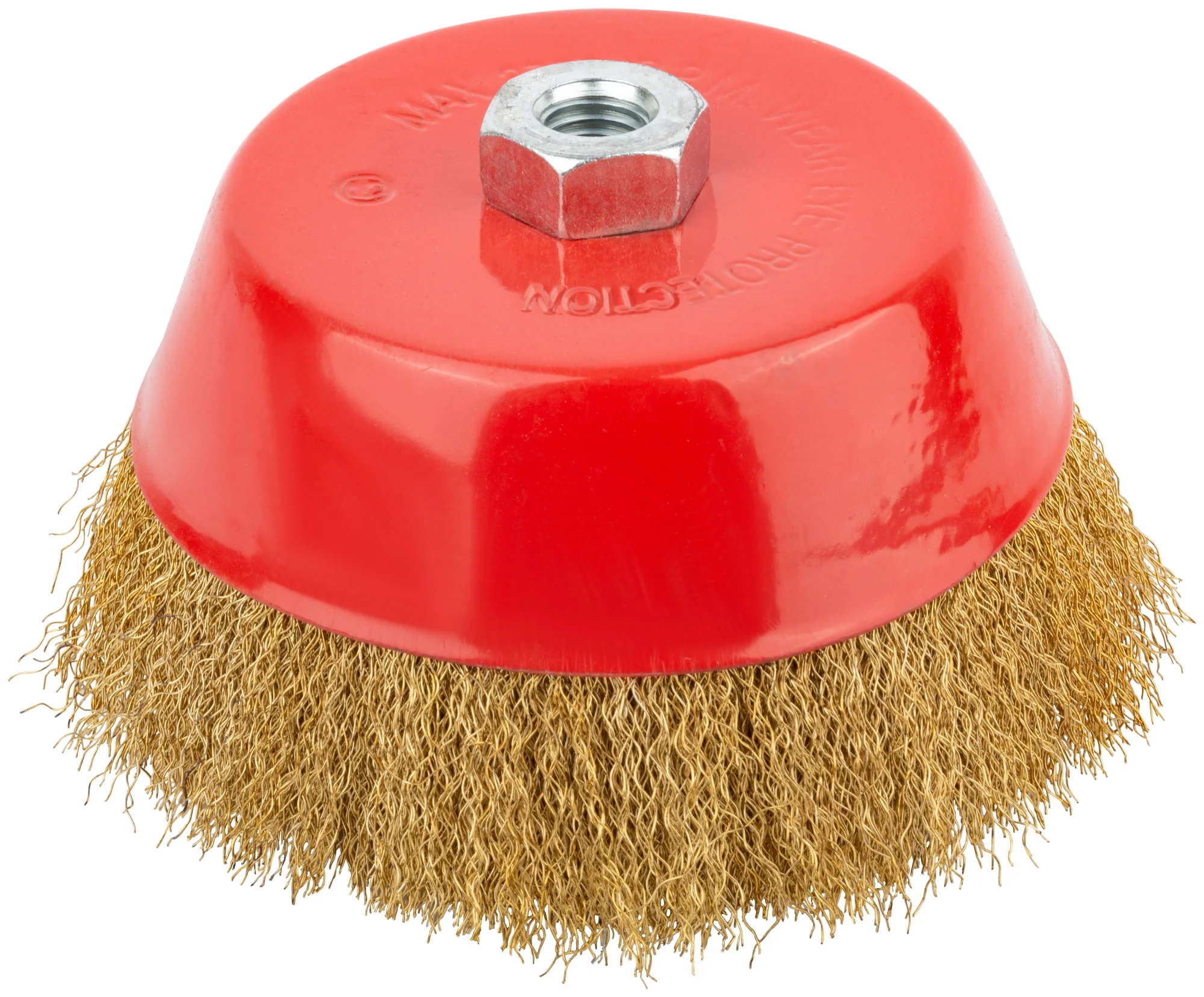 Изготовленная из стальной латунированной волнистой проволоки, корщетка обеспечивает долговечность и надежность в эксплуатации. Гайка М14 позволяет легко и быстро устанавливать ее на УШМ, что экономит время при смене насадок.
