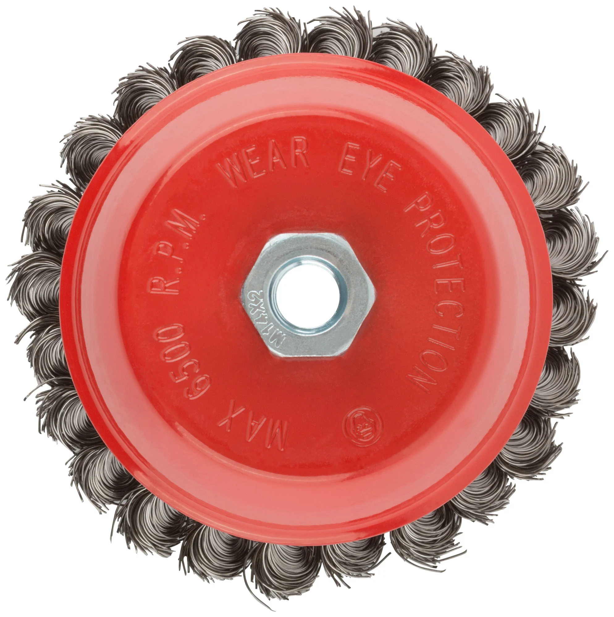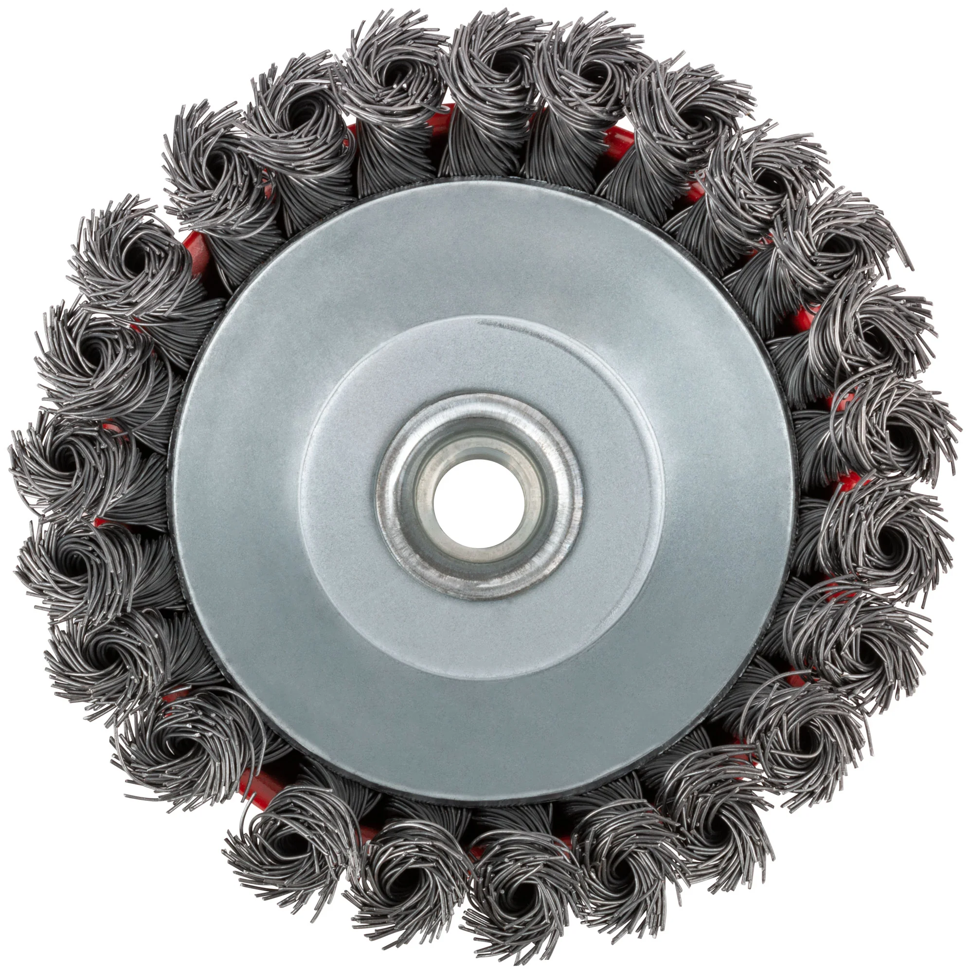 Эта корщетка изготовлена из стальной витой проволоки, обеспечивающей долговечность и высокую эффективность работы. Гайка М14 и типоразмер 125 мм позволяют легко интегрировать её с большинством стандартных УШМ. Максимальная скорость вращения составляет 6500 об/мин.