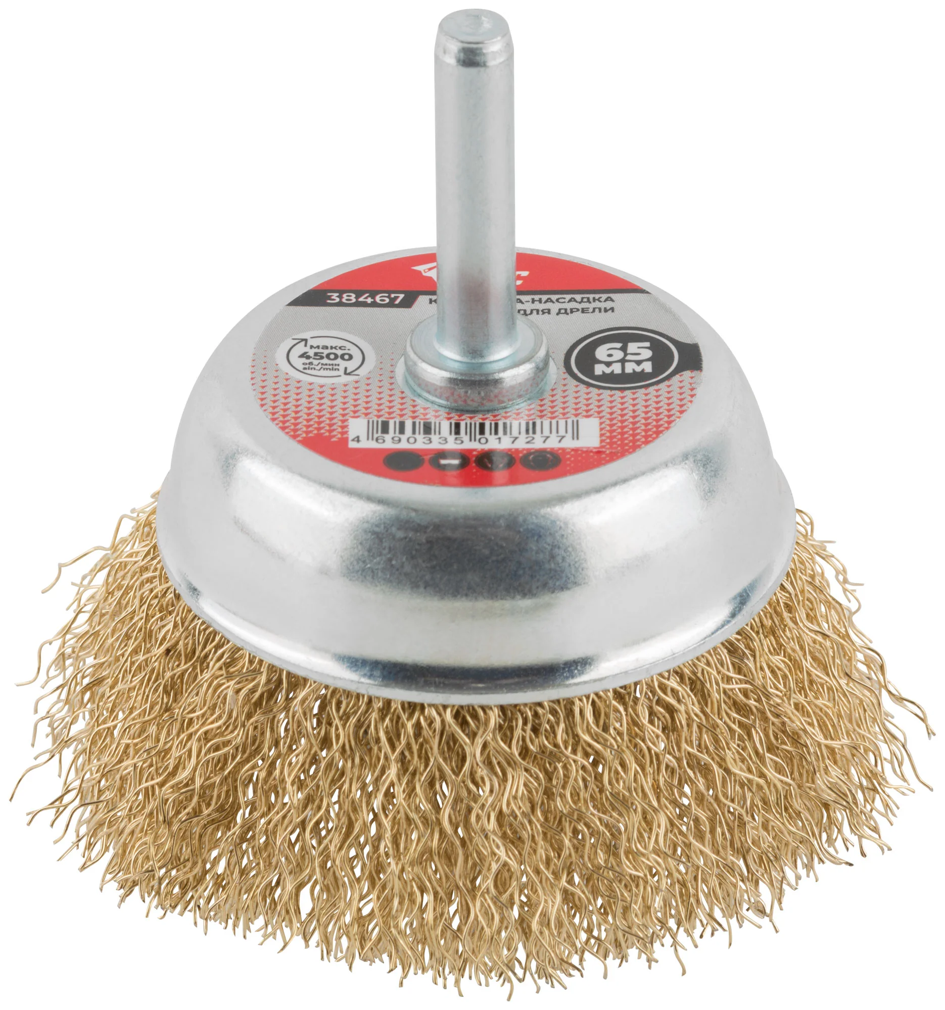 Идеальный инструмент для удаления ржавчины и зачистки различных поверхностей. Корщетка чашечная с диаметром 65 мм и стальной латунированной волнистой проволокой предназначена для использования с дрелью, обеспечивая качественную обработку металлов и других материалов.