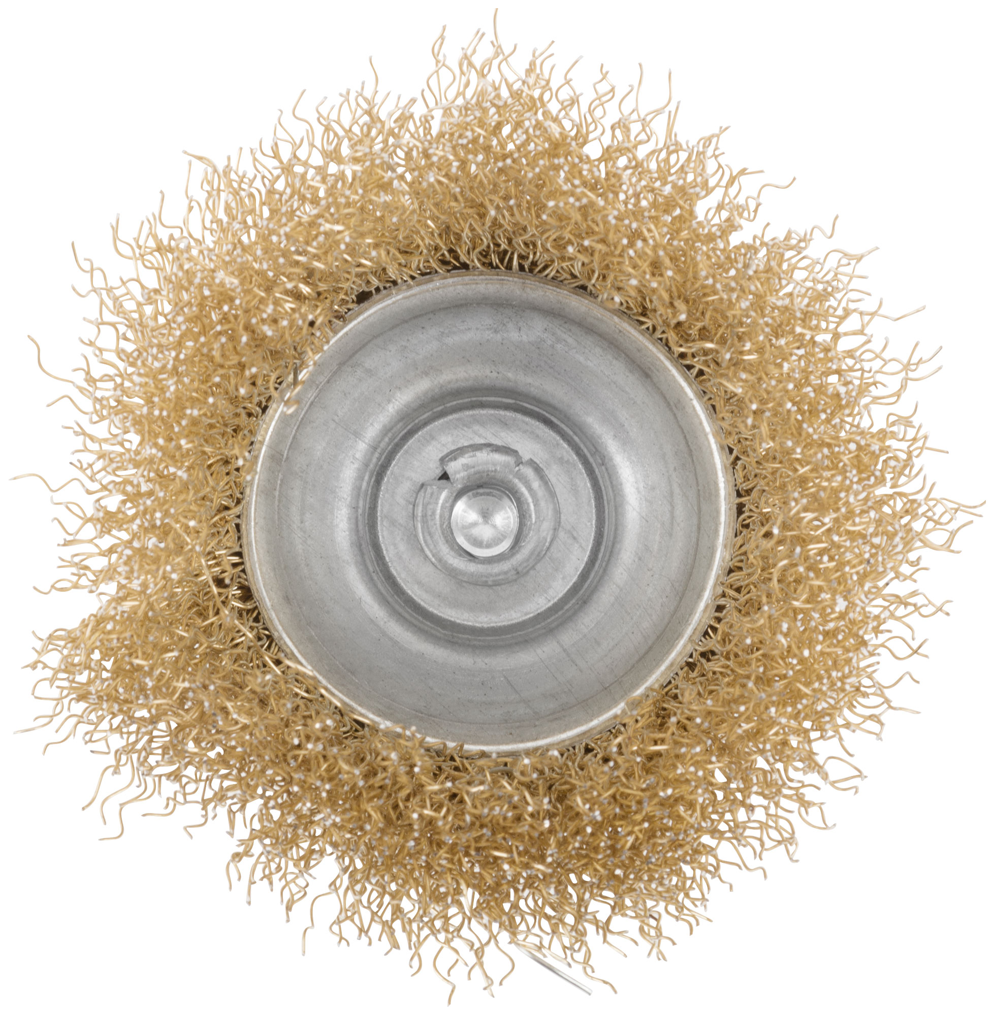 Эта насадка изготовлена из стальной латунированной проволоки, которая повышает износостойкость и долговечность изделия. Чашечная форма и наличие шпильки позволяют надежно крепить корщетку к инструменту, что обеспечивает комфорт и безопасность в работе.