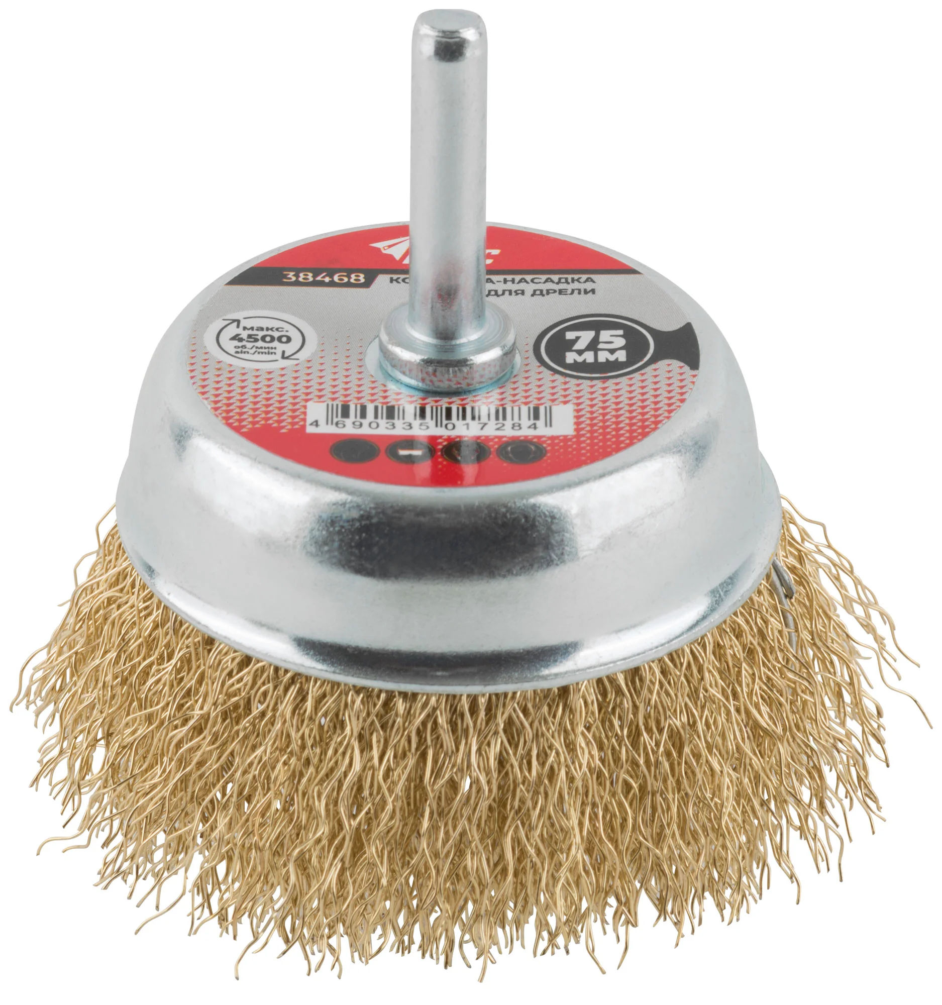 Корщетка изготовлена из стальной латунированной проволоки, что обеспечивает долговечность и стойкость к износу. Конструкция со шпилькой позволяет быстро и надежно закрепить ее в дрели.