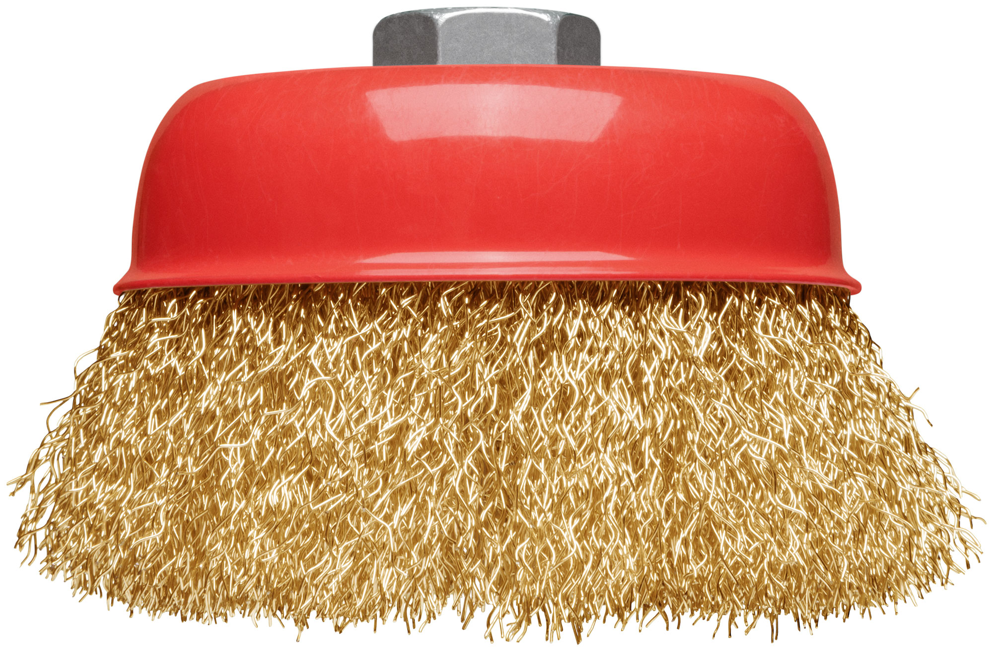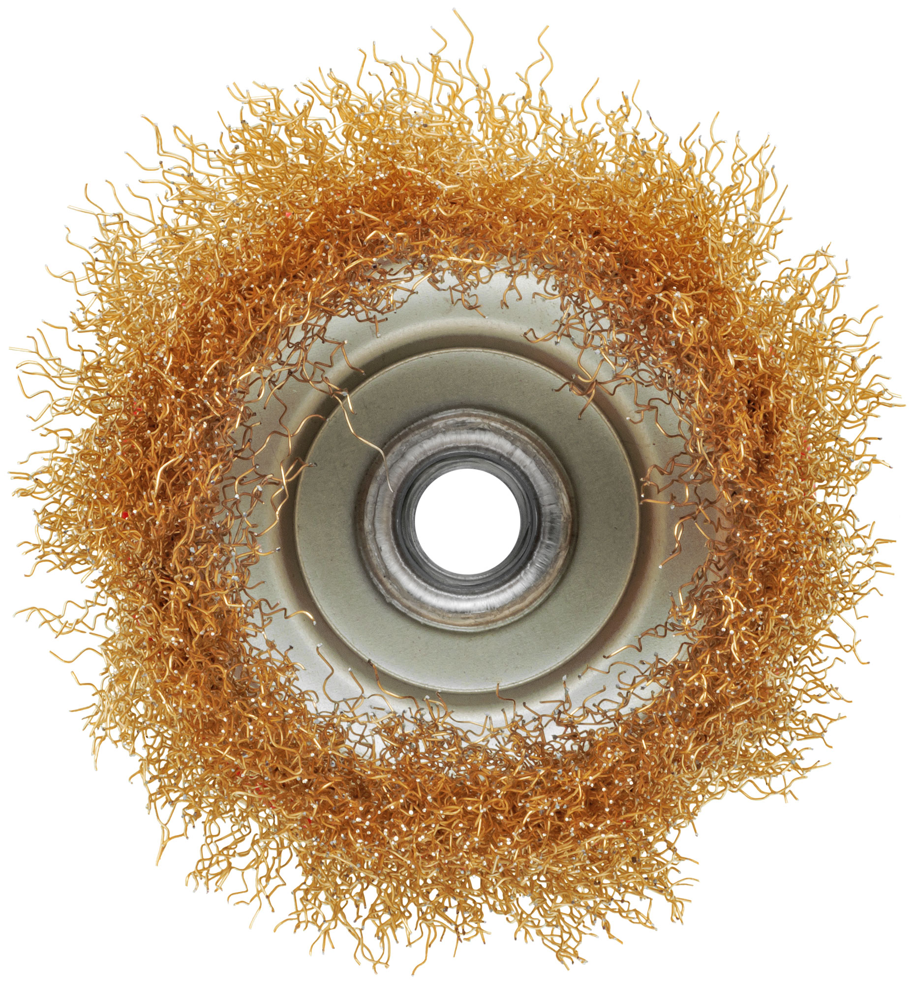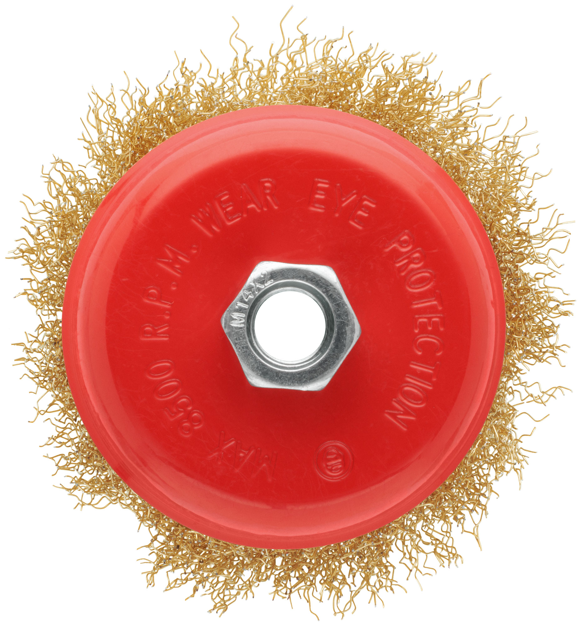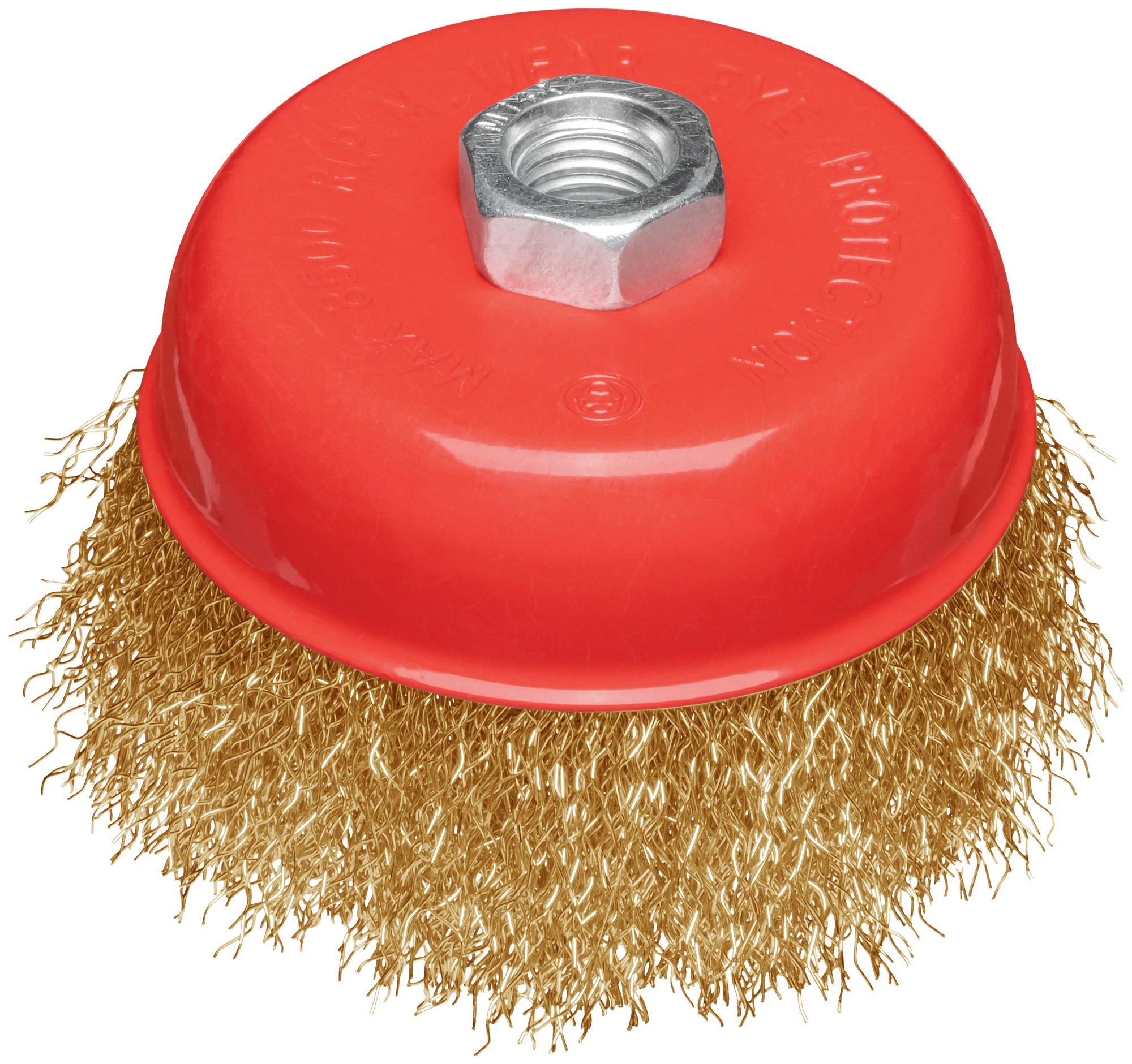 Корщетка выполнена из стальной латунированной волнистой проволоки, что обеспечивает высокую износостойкость и долговечность. Универсальное крепление гайкой М14 позволяет быстро и легко установить насадку на угловую шлифовальную машину (УШМ).