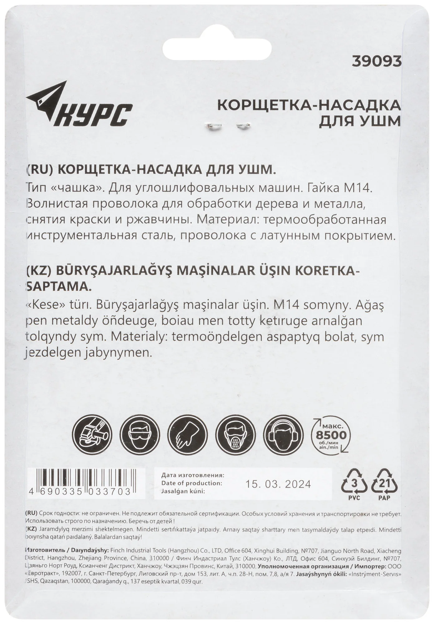 Выберите корщетку-чашку 100 мм от бренда КУРС, чтобы значительно облегчить и ускорить процесс обработки металлических поверхностей. Код товара: 39093.