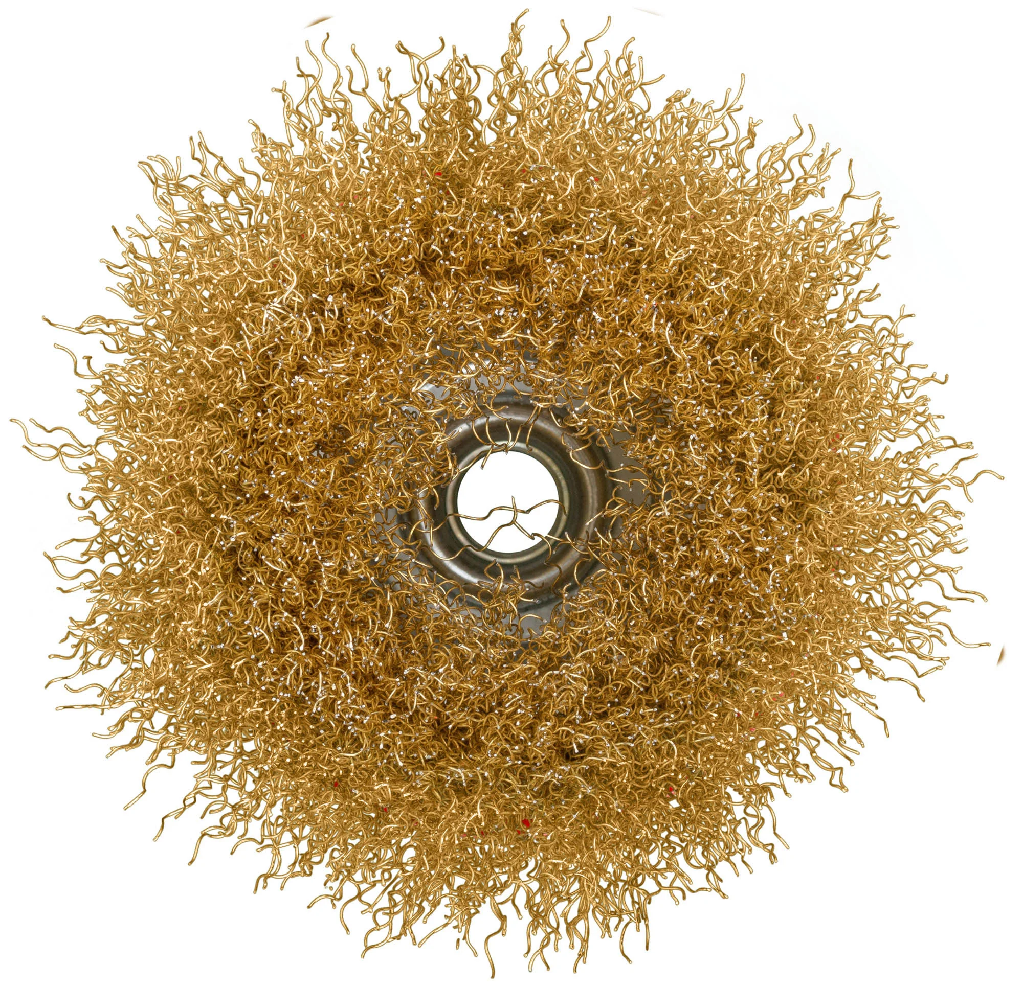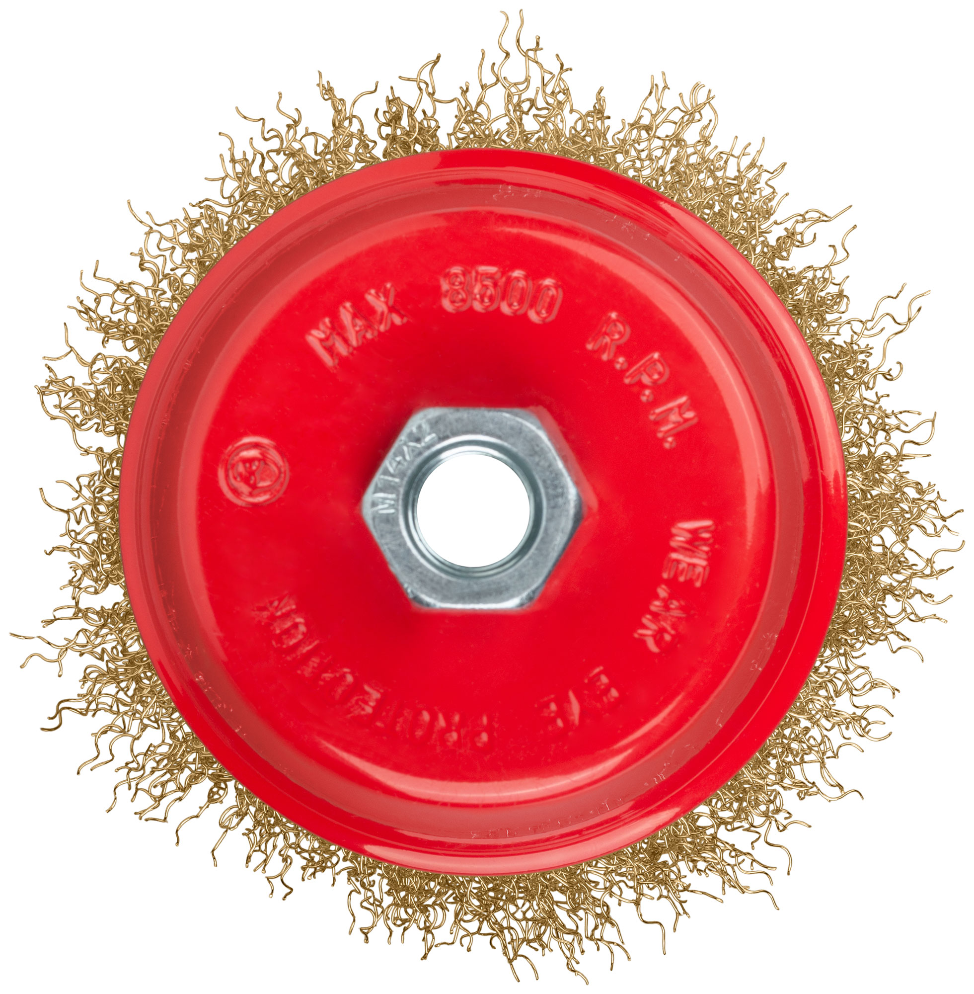 Изделие оснащено гайкой М14, что обеспечивает легкую и быструю установку на УШМ. Стальная латунированная волнистая проволока диаметром 100 мм гарантирует долговечность и устойчивость к износу, а также обеспечивает безопасную и эффективную работу при максимальной скорости до 8500 об/мин.