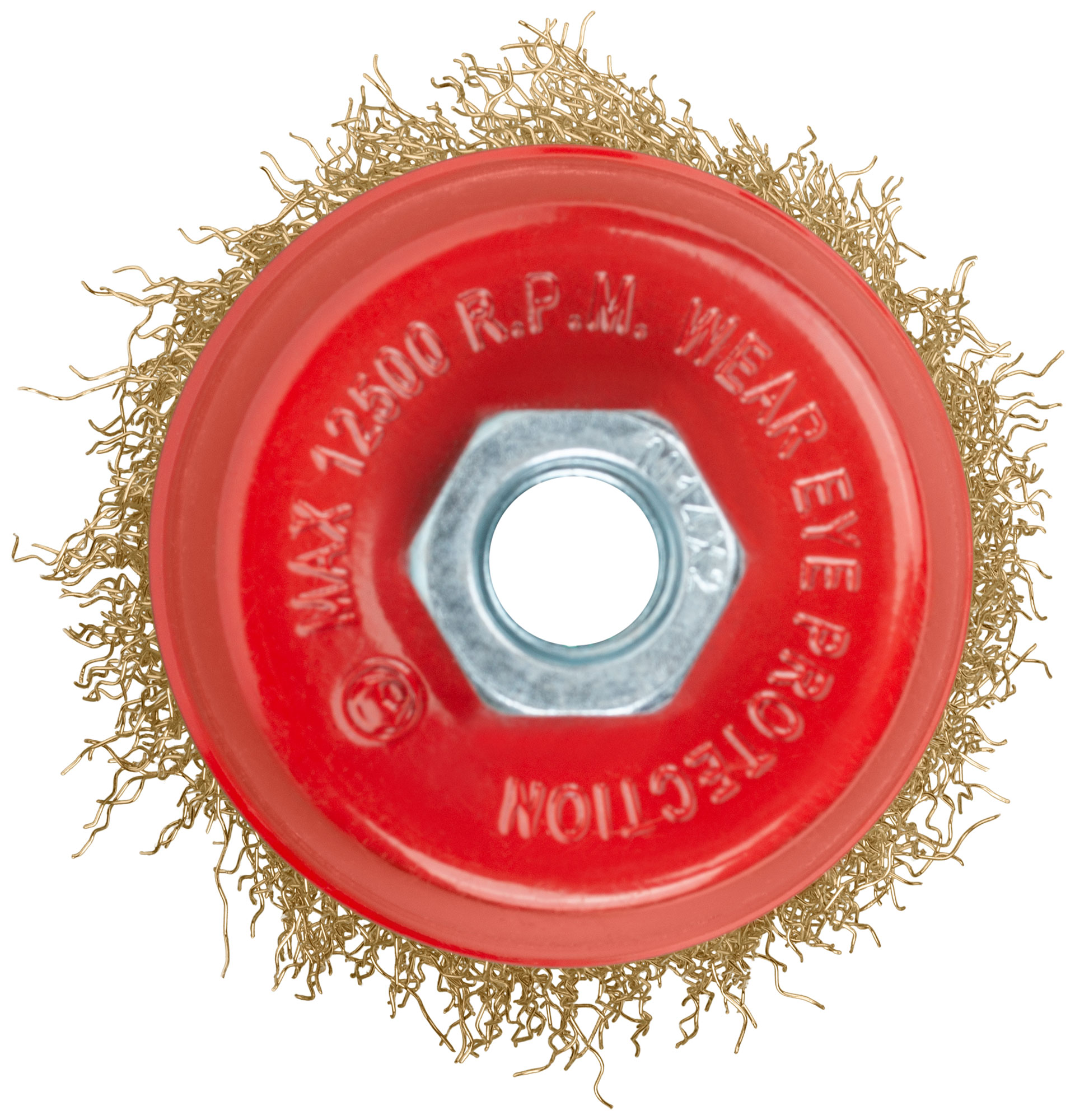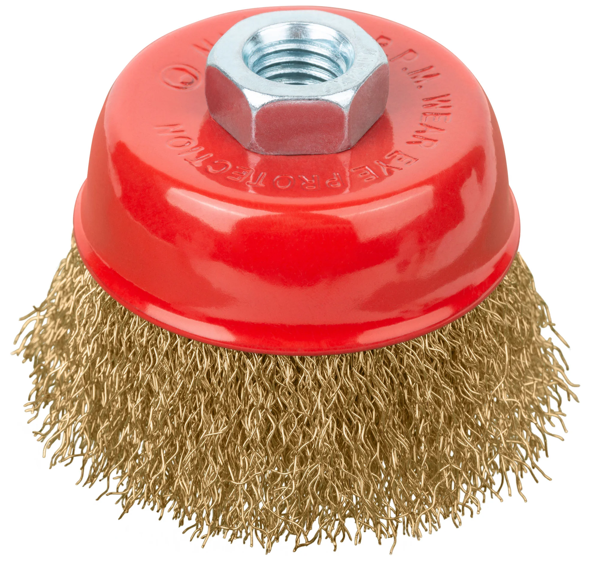 Изготовленная из стальной латунированной волнистой проволоки, корщетка обеспечивает долговечность и надежность в работе. Гайка М14 позволяет легко и быстро закрепить её на УШМ. Размер 75 мм и максимальная скорость вращения до 12500 об/мин делают её универсальным инструментом для большинства задач.