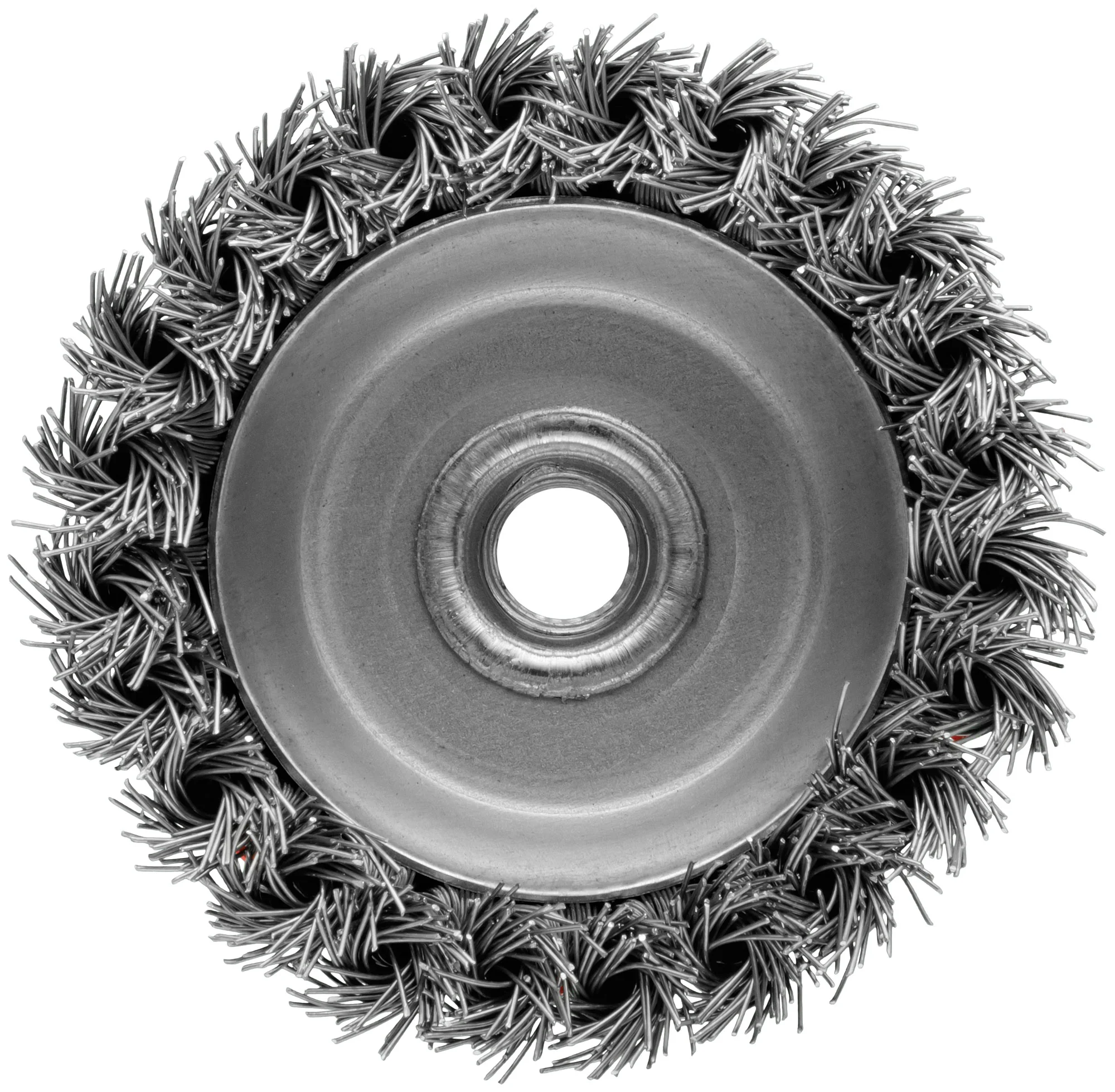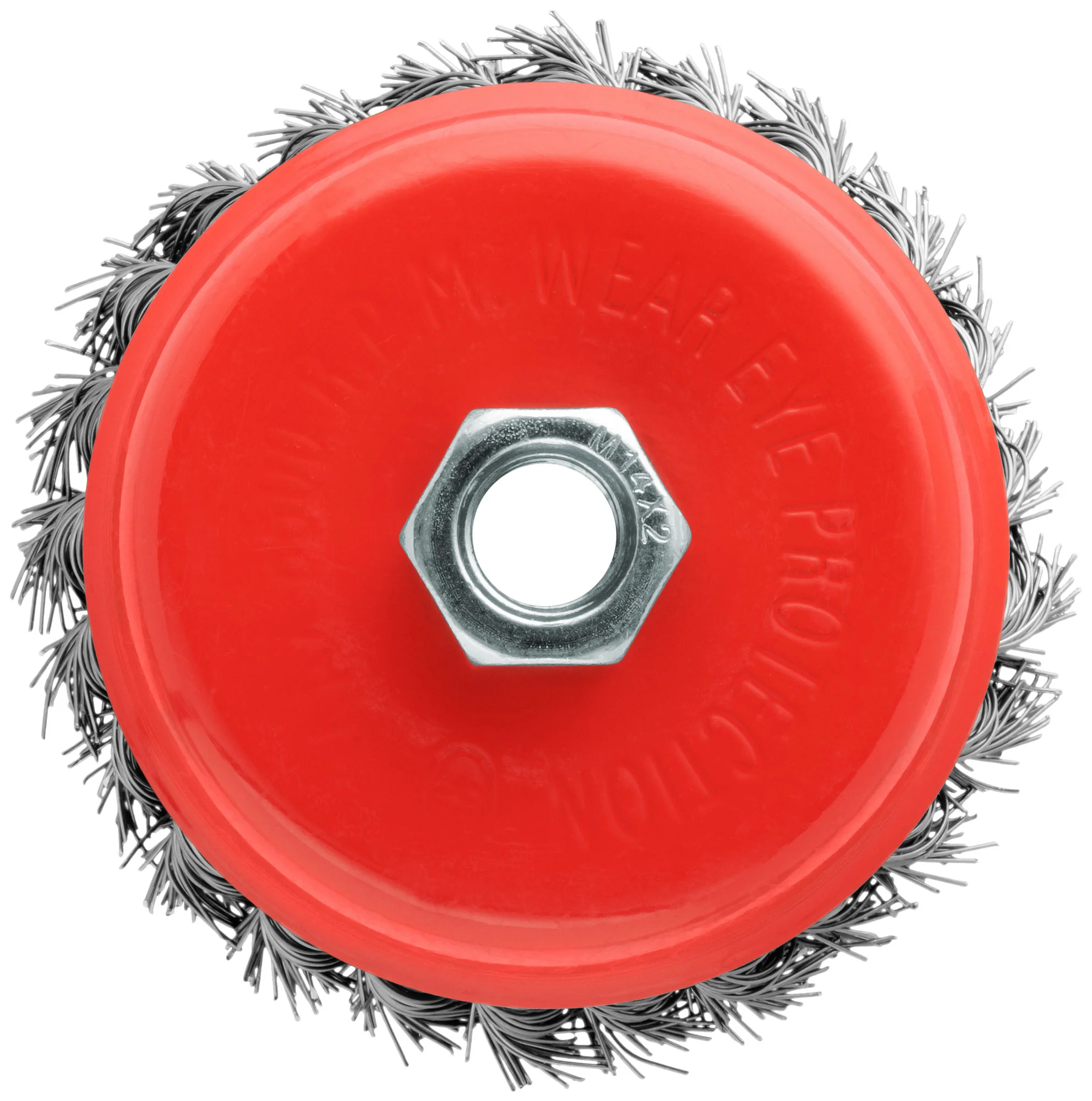 Эта корщетка-чашка диаметром 100 мм с гайкой М14 идеально подходит для использования с угловыми шлифовальными машинами. Она незаменима при зачистке поверхностей от ржавчины, краски или других загрязнений, обеспечивая быстрое и качественное выполнение задачи.