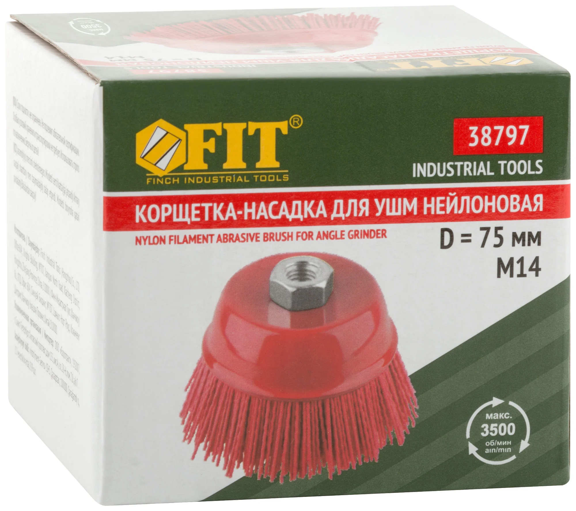 Конструкция корщетки включает нейлоновые щетины и основу из инструментальной стали, что обеспечивает надежность и долговечность. Оборудована гайкой М14 для легкой установки на УШМ.