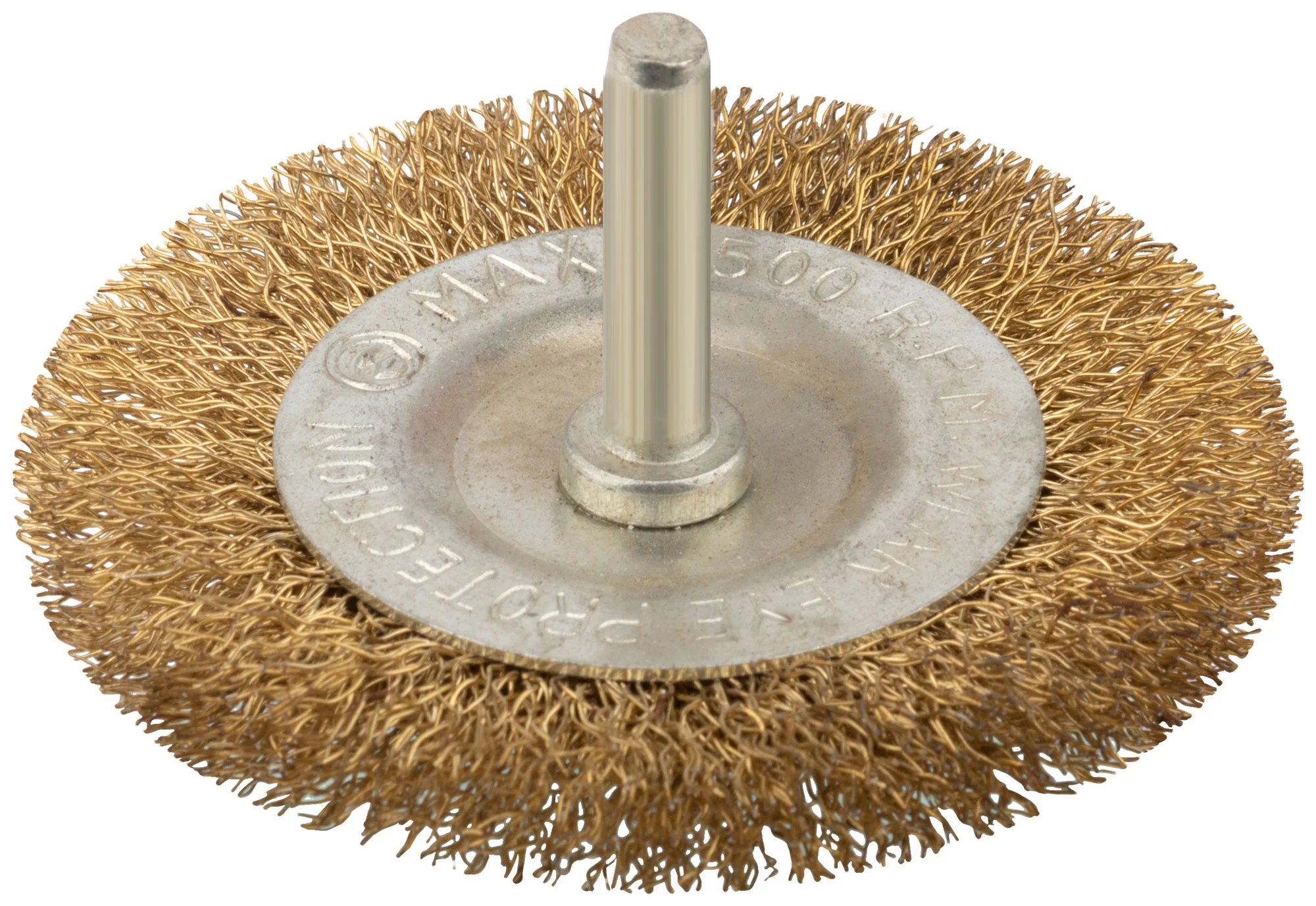 Корщетка оснащена стальной латунированной волнистой проволокой, что обеспечивает качественное очищение поверхности. Шпилька позволяет легко закреплять её на дрели, обеспечивая надежную фиксацию во время работы.