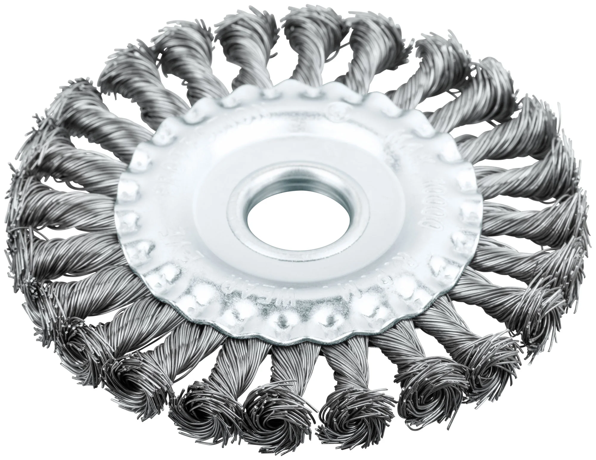 Изготовленная из витой стальной проволоки, корщетка обладает высокой износостойкостью и долговечностью. Типоразмер 125 мм и максимальная скорость вращения до 10000 об/мин делают её незаменимой для интенсивных работ.