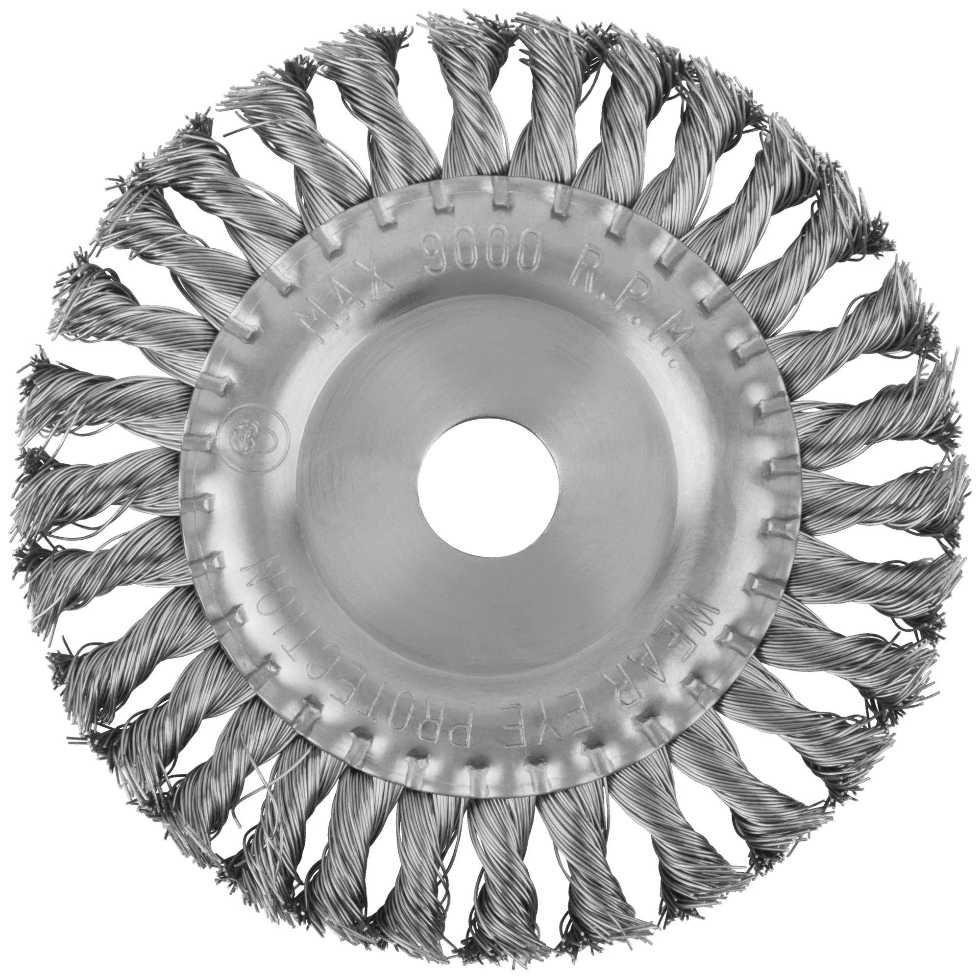 Эта корщетка-колесо диаметром 150 мм специально разработана для использования с углошлифовальными машинами (УШМ). Она идеально подходит для очистки металлических поверхностей от ржавчины, краски и других загрязнений, обеспечивая высокую скорость и эффективность работы.