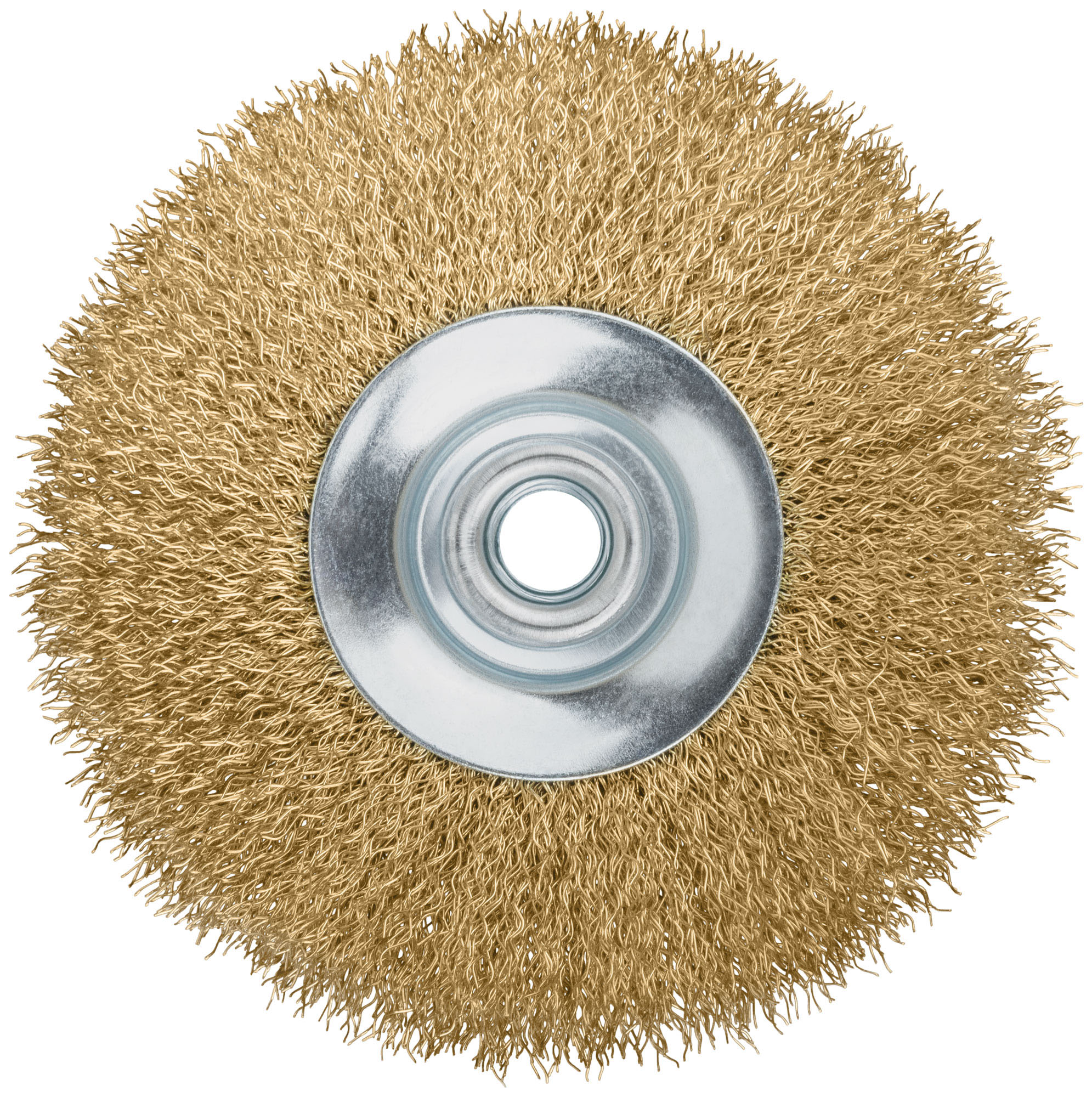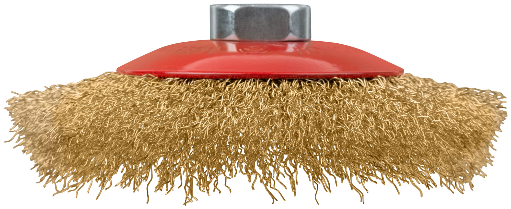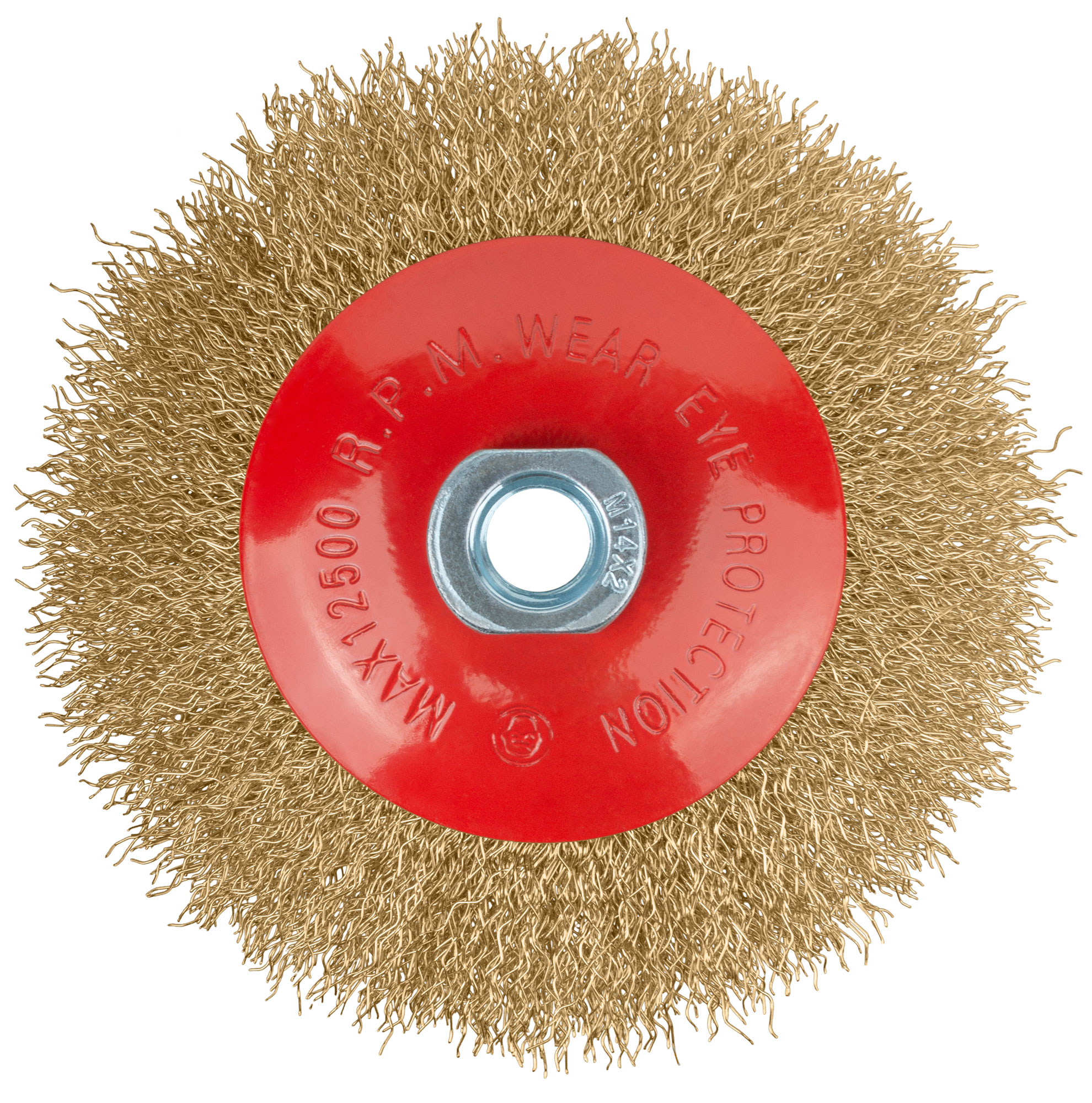 Корщетка-колесо с наклоном, гайка М14, стальная латунированная волнистая проволока 125 мм