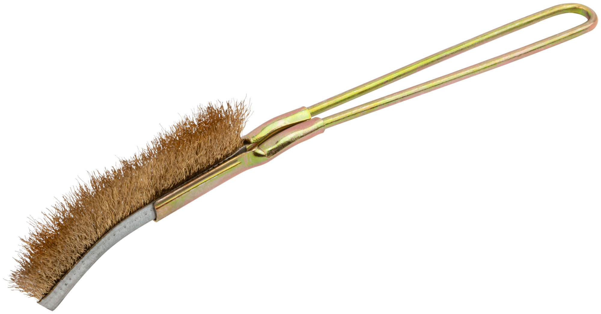 Изогнутая форма позволяет легко проникать в труднодоступные участки, обеспечивая качественную обработку поверхностей. Стальная латунированная проволока гарантирует надежность и долговечность, что делает корщетку незаменимой в профессиональных и бытовых условиях.