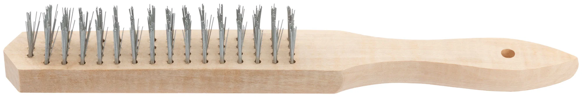 Идеально подходит для удаления ржавчины, краски и прочих загрязнений с металлических поверхностей. Удобная деревянная ручка обеспечивает комфортный захват, позволяя работать продолжительное время без усталости.