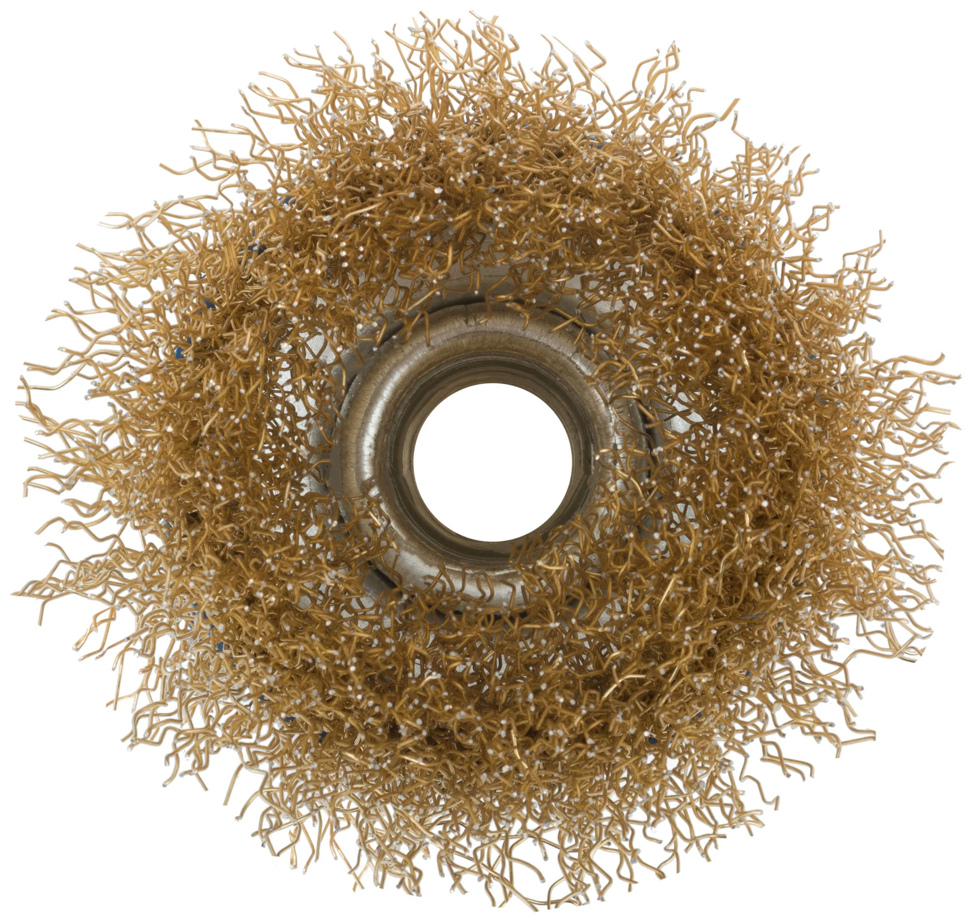 Изготовленная из латунированной волнистой проволоки, корщетка имеет прочную конструкцию и устойчивость к износу, что особенно важно при интенсивном использовании. Гайка М14 обеспечивает надежное крепление на УШМ, предотвращая случайное отсоединение во время работы.