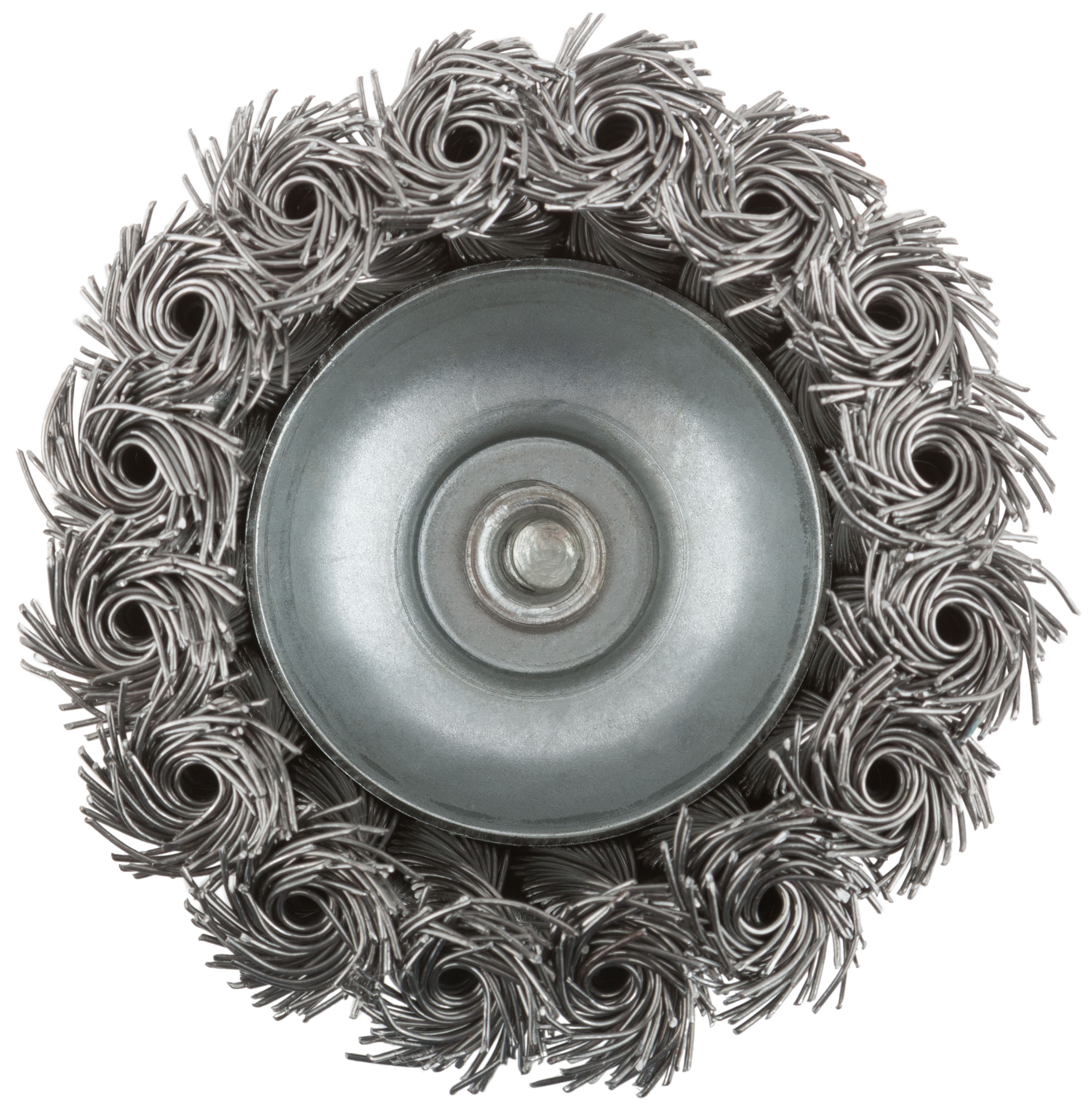 Изготовлена из стальной витой проволоки, что гарантирует долговечность и надежность в использовании. Шпилька позволяет легко закрепить инструмент на дрели.