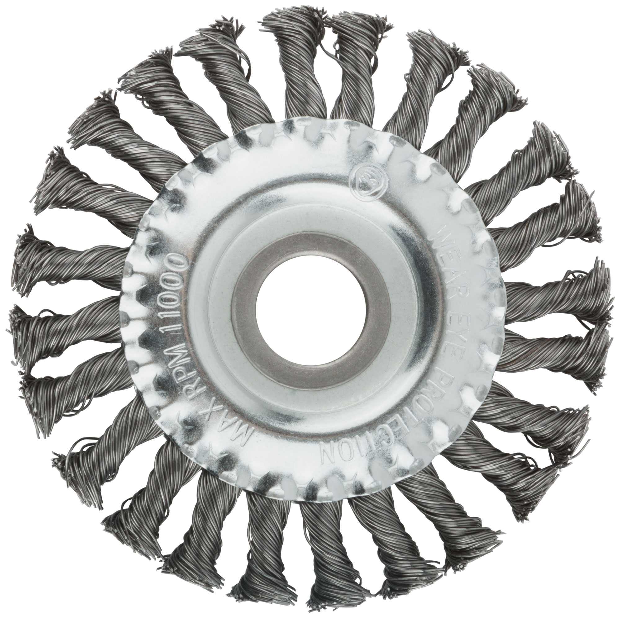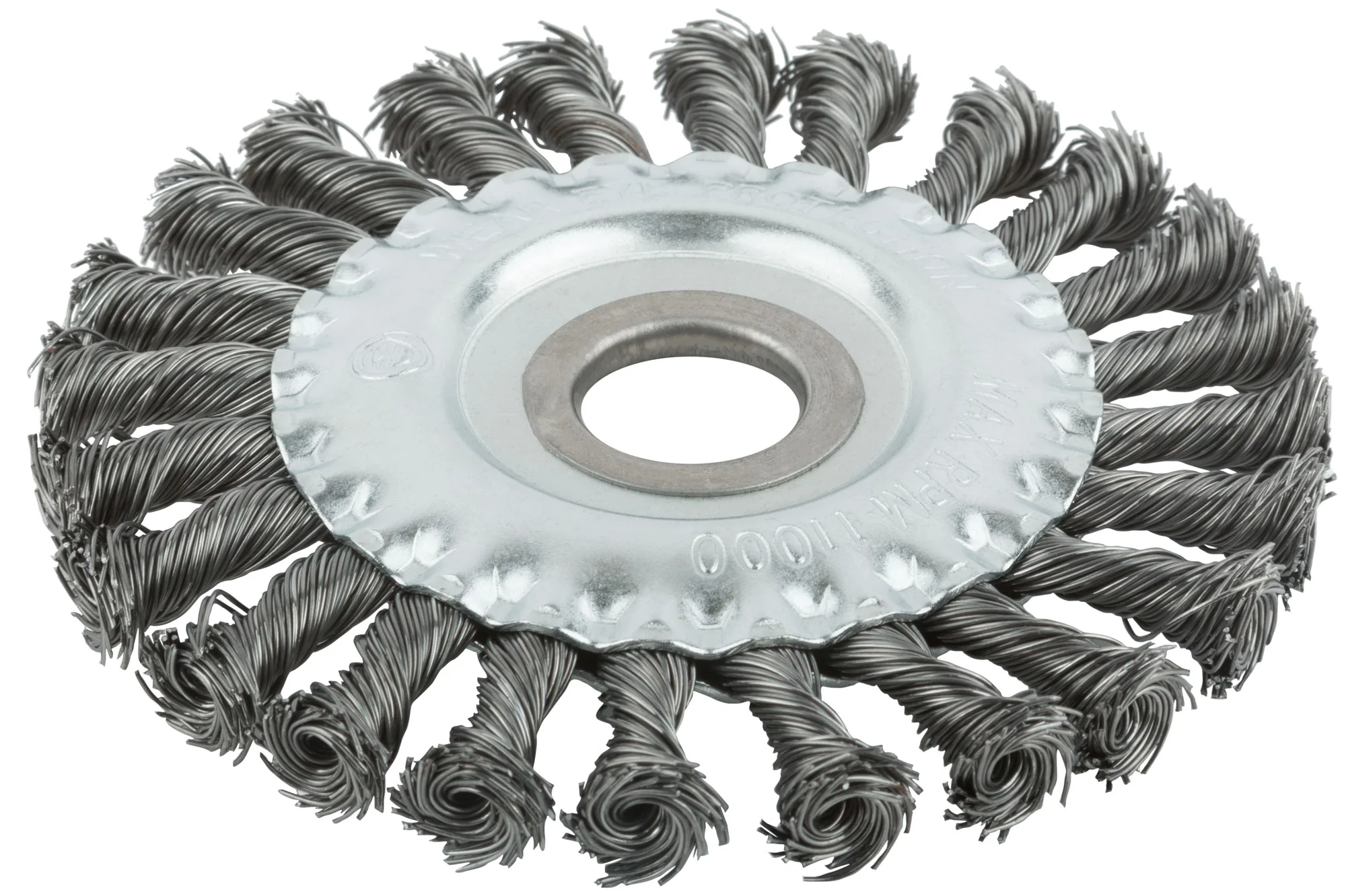 Конструкция из витой стальной проволоки и посадочный диаметр 22,2 мм обеспечивают надежную фиксацию и долговечность в использовании. Корщетка имеет типоразмер 125 мм и выдерживает до 11000 об/мин, что делает ее универсальной для разнообразных задач.