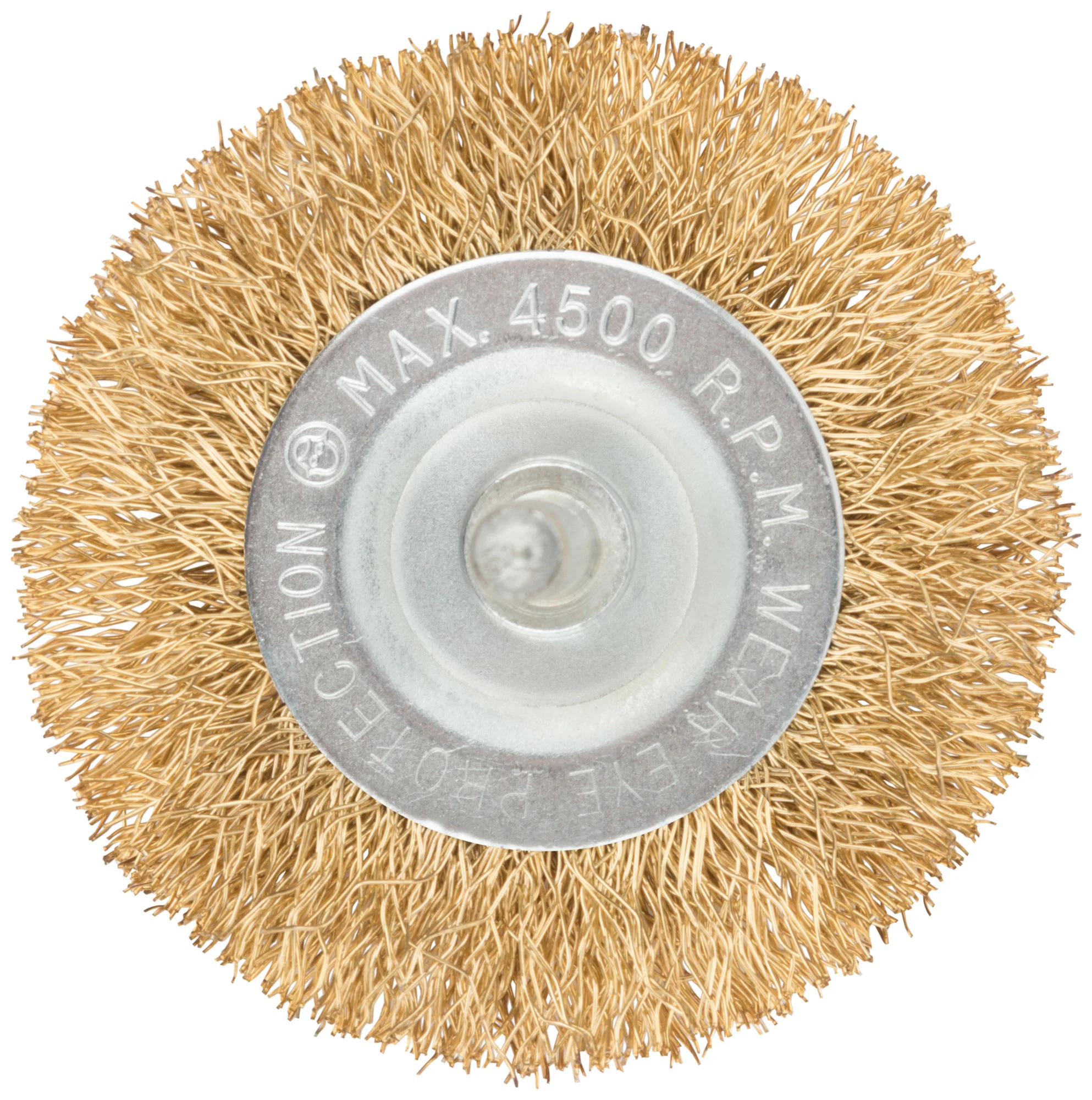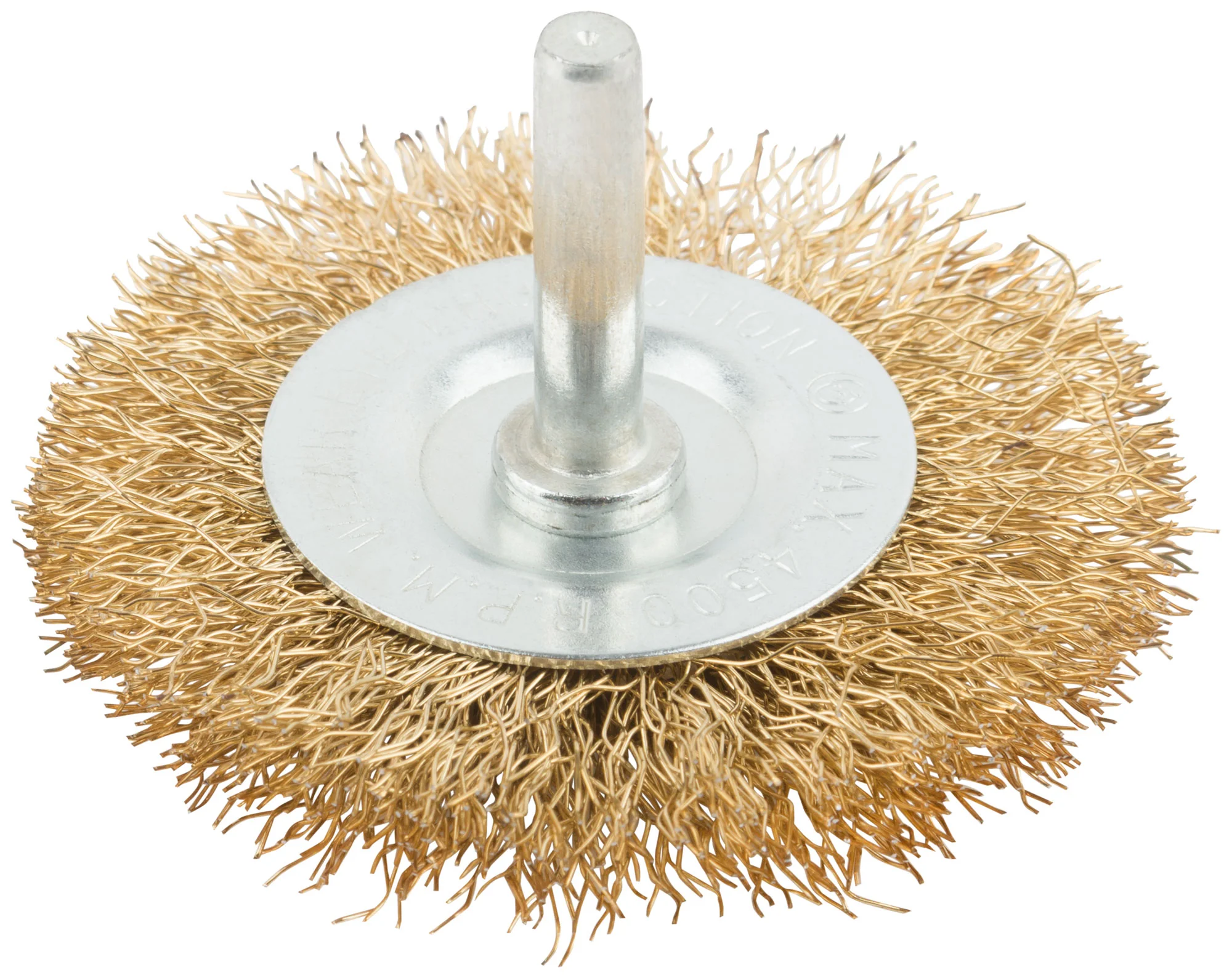 Корщетка выполнена из стальной латунированной волнистой проволоки, которая обеспечивает надежное и равномерное удаление загрязнений. Тип "колесо" позволяет работать с различными поверхностями, а штифт обеспечивает надежное крепление к дрели.