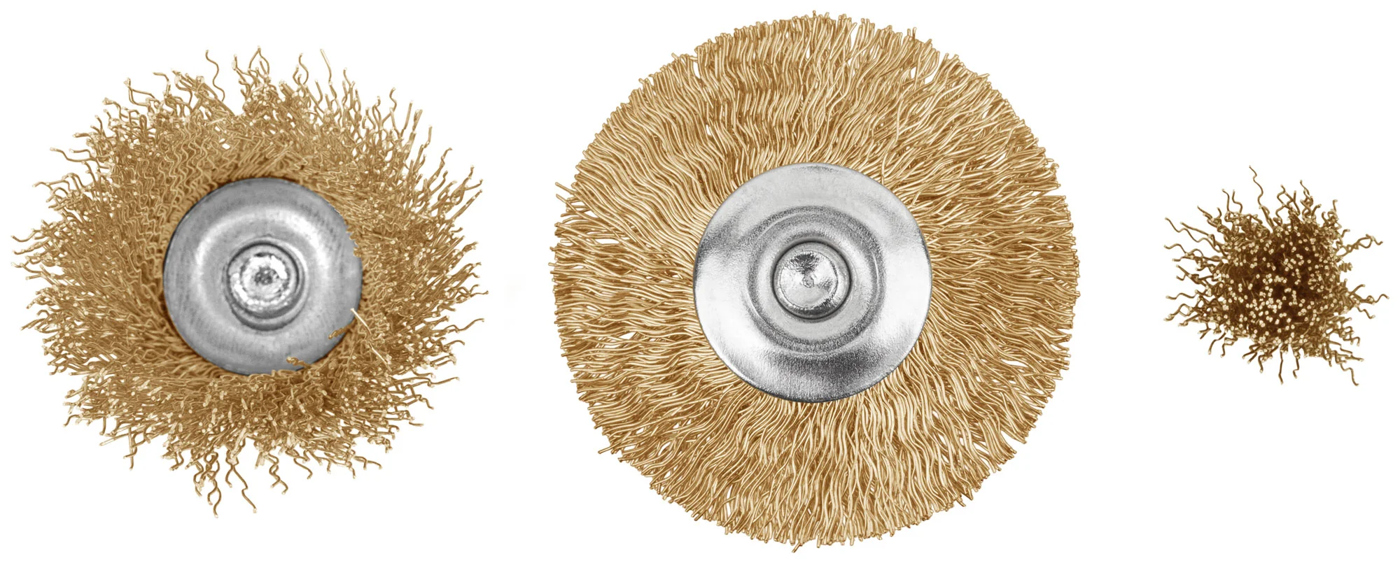 Корщетки изготовлены из латунированной проволоки, что обеспечивает их долговечность и высокую эффективность при обработке материалов. Они компактно упакованы в блистер, что упрощает хранение и транспортировку.