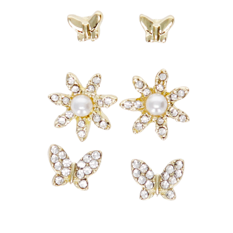 Погрузитесь в мир элегантности с набором серег Miny. Этот комплект включает три пары стильных серег, украшенных изящными узорами бабочек и цветов. Серебристый блеск добавляет нотку утонченности к вашему образу, делая его завершенным.