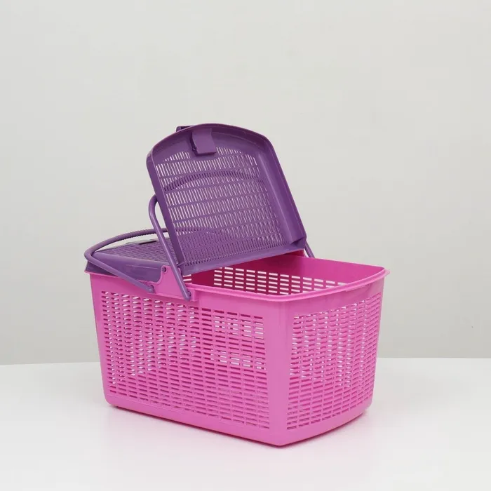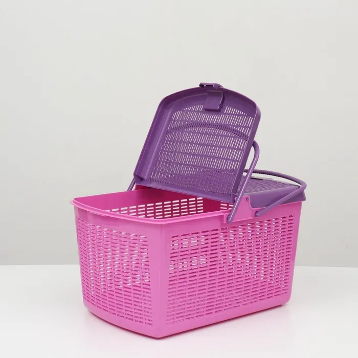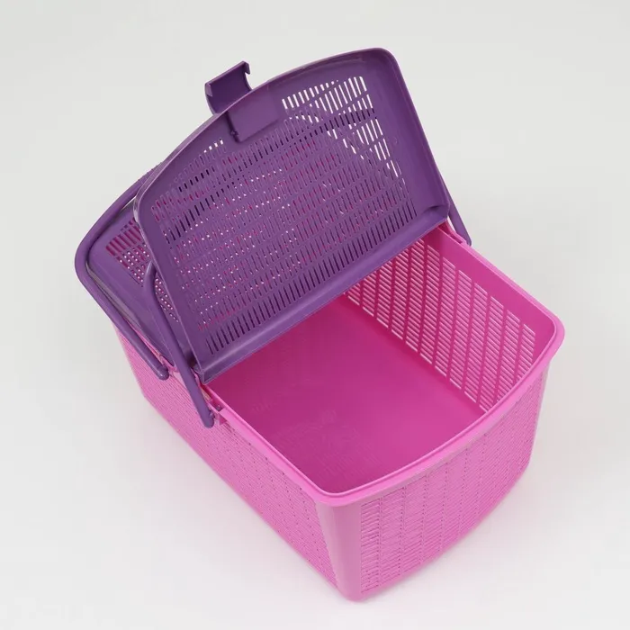 Корзинка имеет удобную ручку для переноски и вентиляционные отверстия, обеспечивающие свежий воздух внутри.