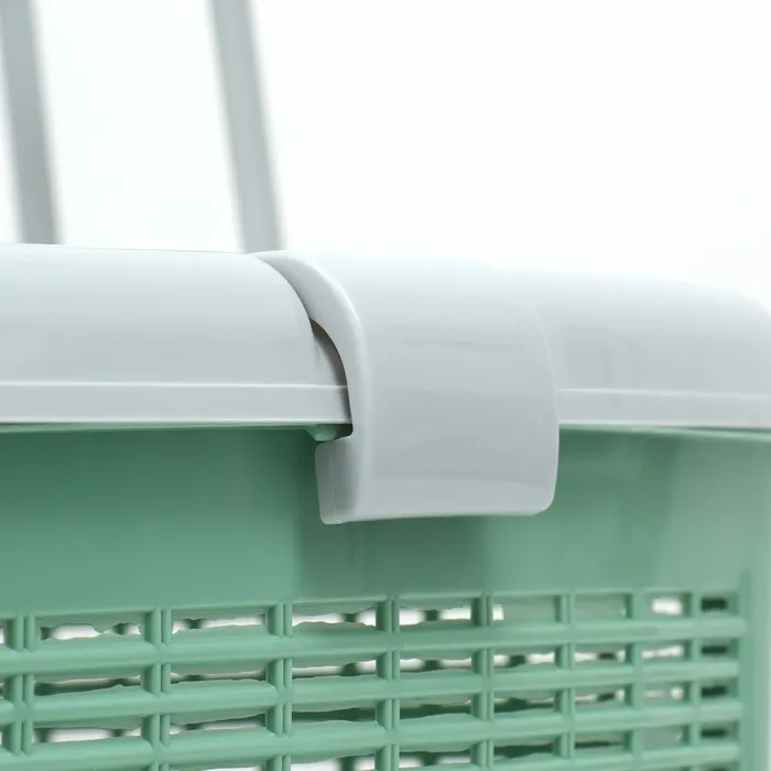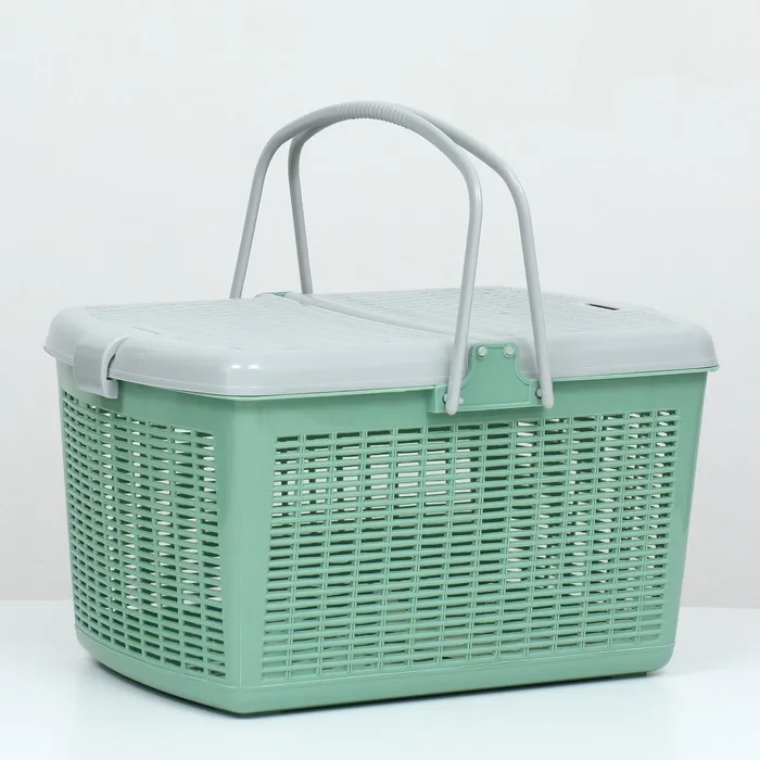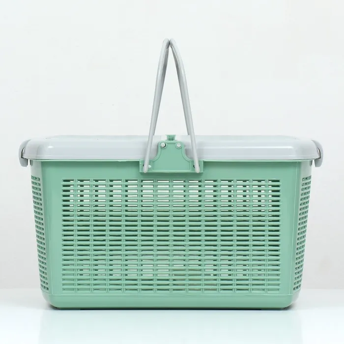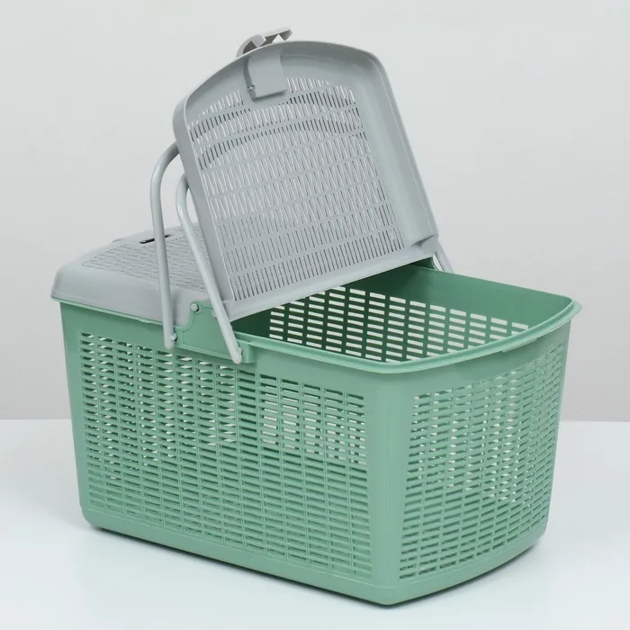 Корзинка имеет удобную ручку для переноски и вентиляционные отверстия, обеспечивающие свежий воздух внутри.