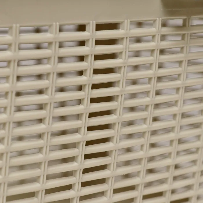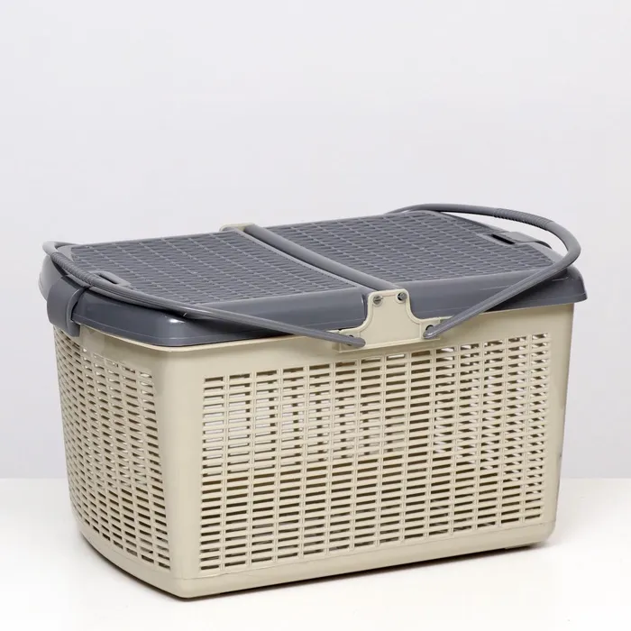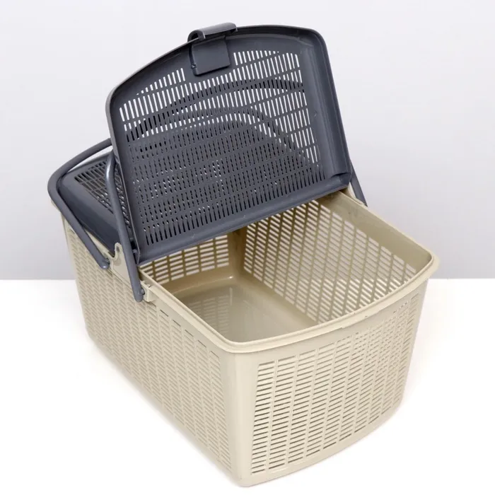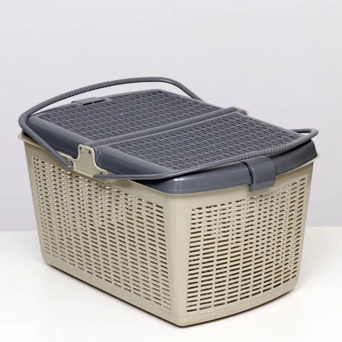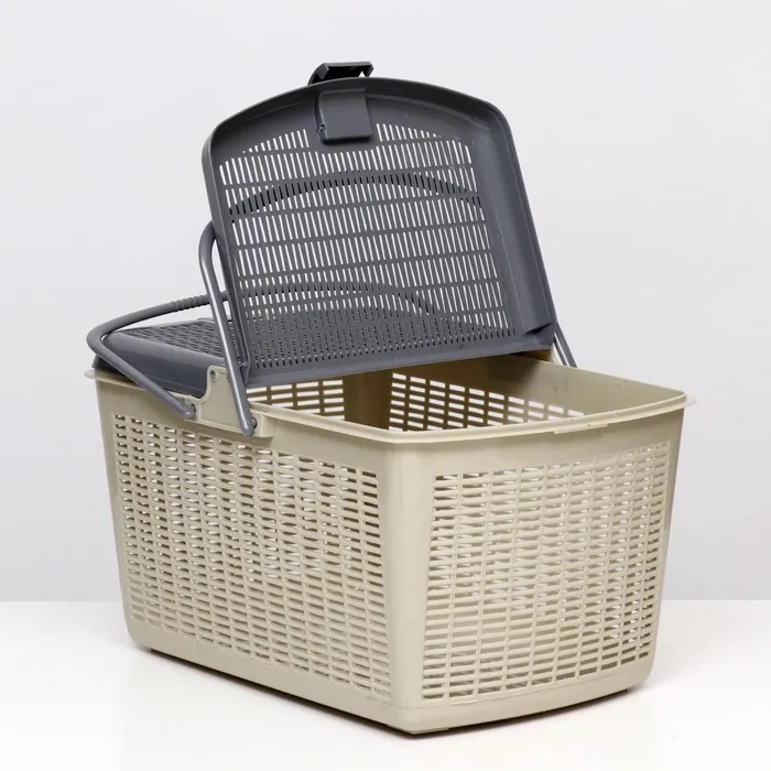 Корзинка имеет удобную ручку для переноски и вентиляционные отверстия, обеспечивающие свежий воздух внутри.