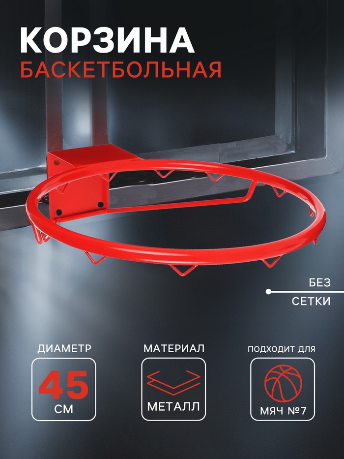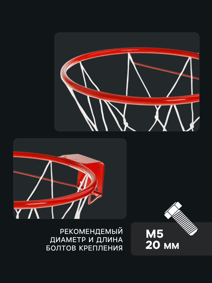 Корзина баскетбольная №5 «Люкс», d=380 мм, с упором и сеткой — Характеристики