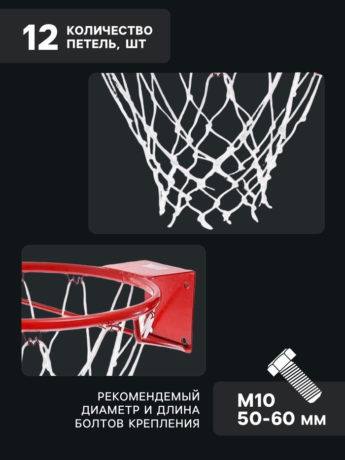 Кольцо с сеткой предназначено для игры в баскетбол. Подходит для игр в зале и на улице.