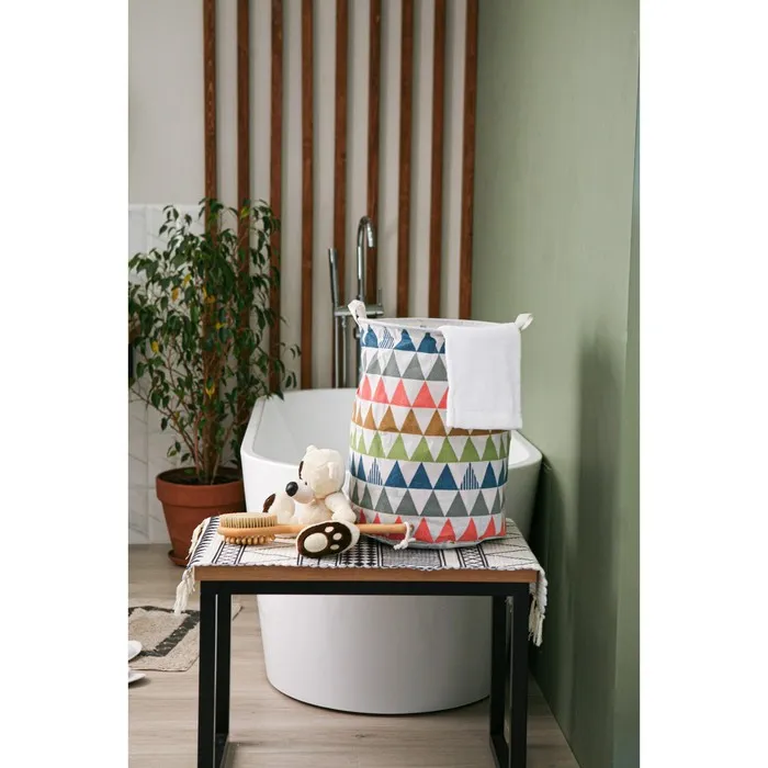 Корзина бельевая Доляна «Цветные треугольники», 35×35×45 см, текстиль — Характеристики