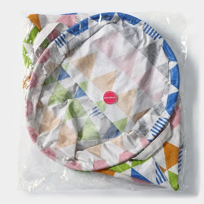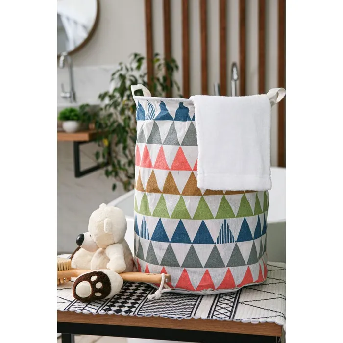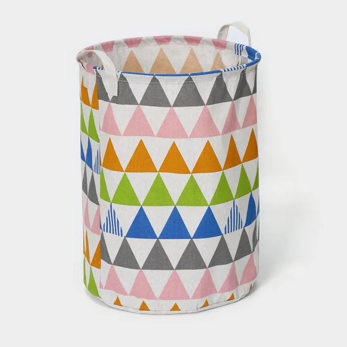 Для каждой хозяйки просто необходима вместительная корзина для белья «Цветные треугольники». Текстильные корзины долговечны, материал не деформируется со временем. При правильном уходе и бережном обращении изделие прослужит вам очень долго.