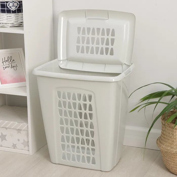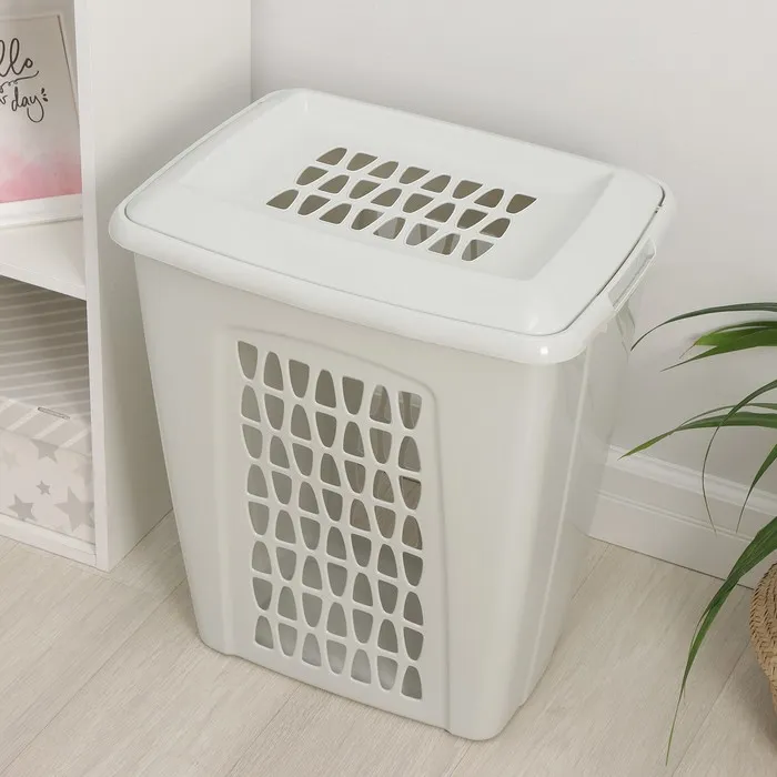 Корзина бельевая «Молетта», 60 л, 47,9×36,9×55 см, с крышкой, светло-серая