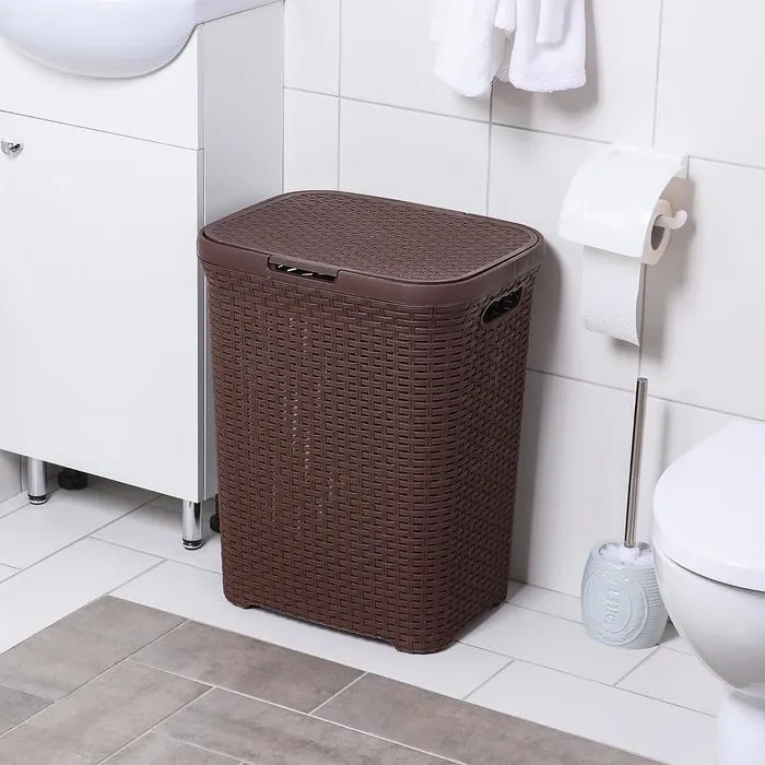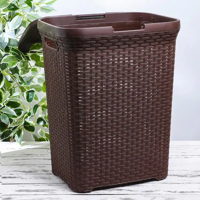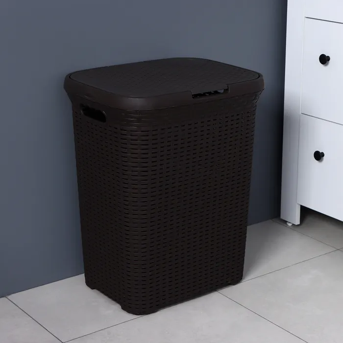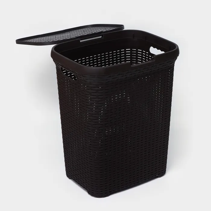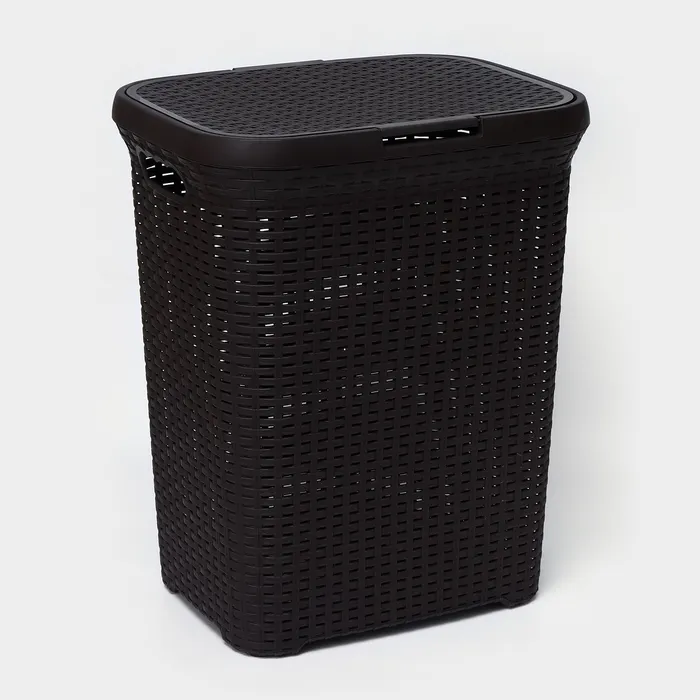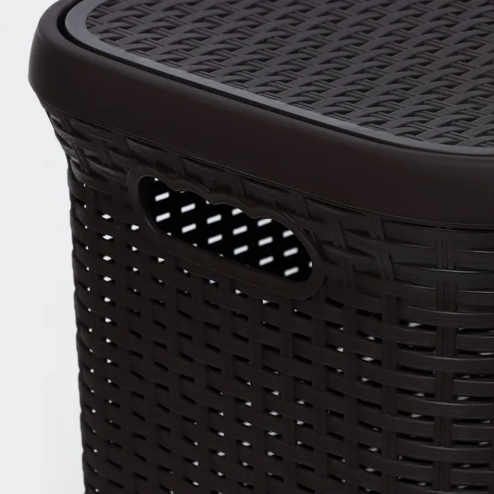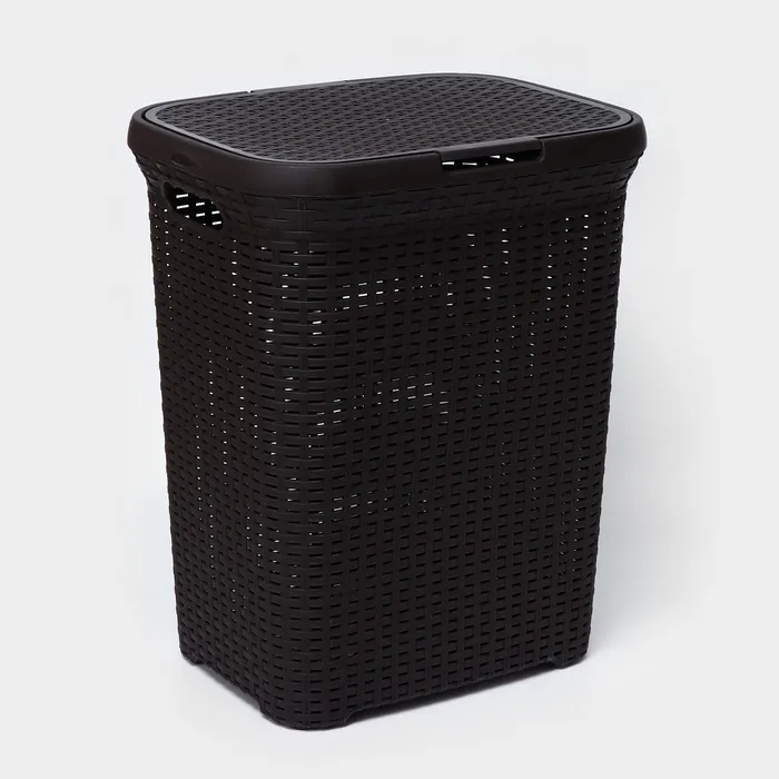 Корзина бельевая «Ротанг», 60 л, 34.6×44.5×56 см, с крышкой, коричневая
