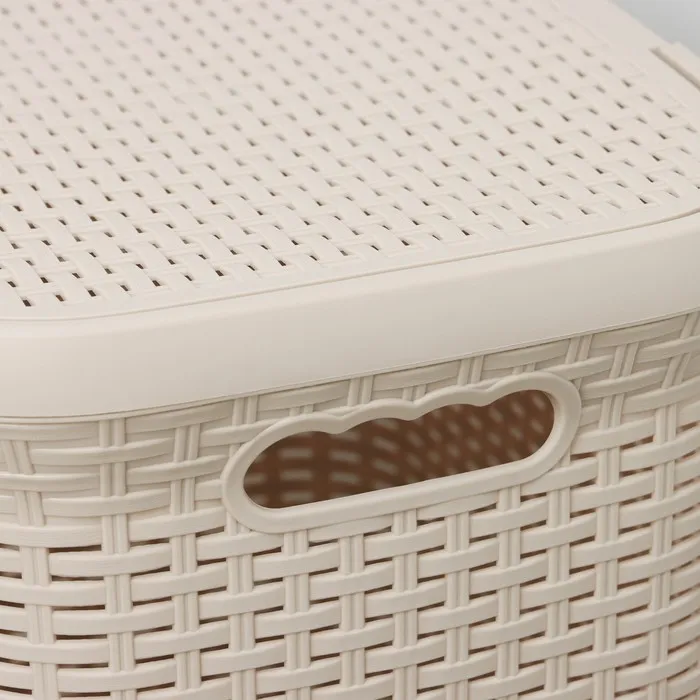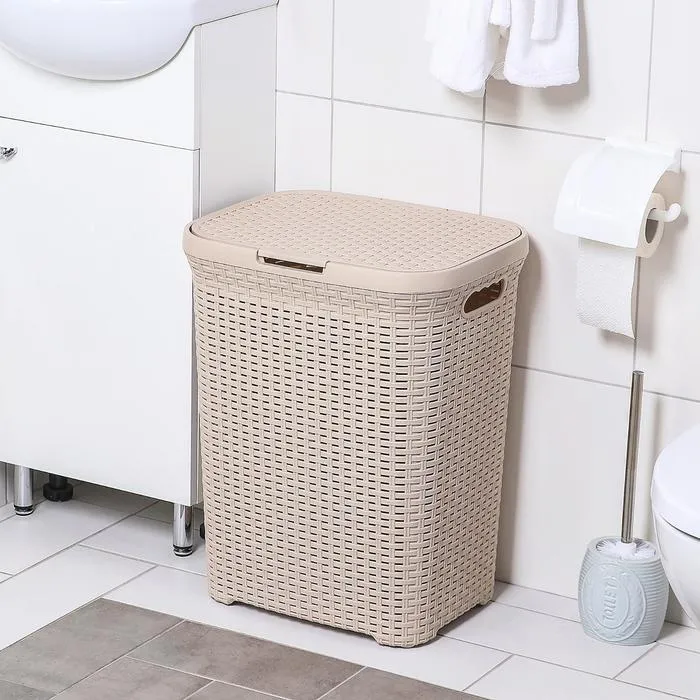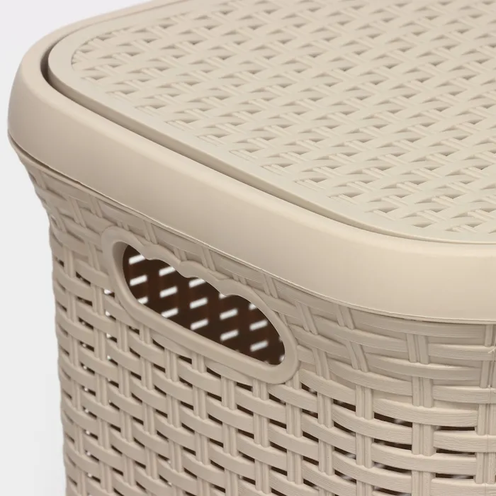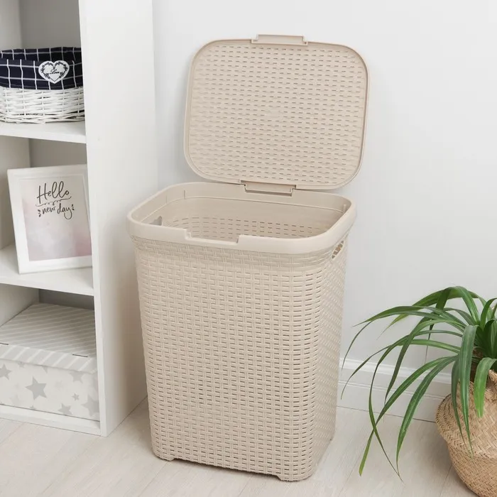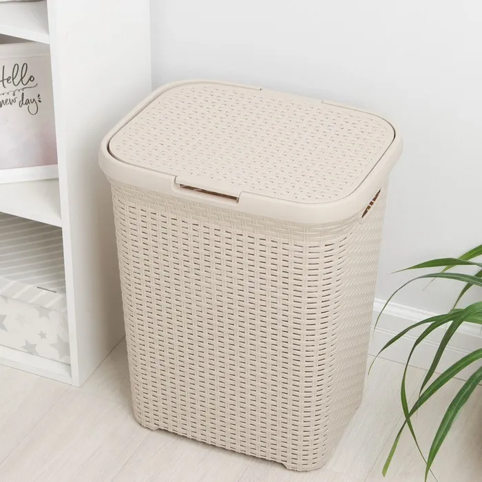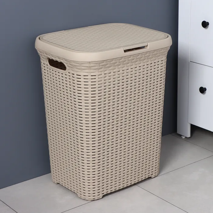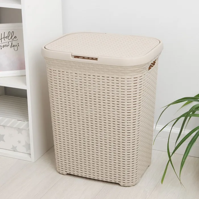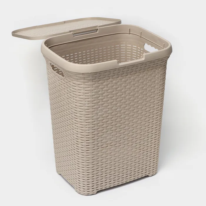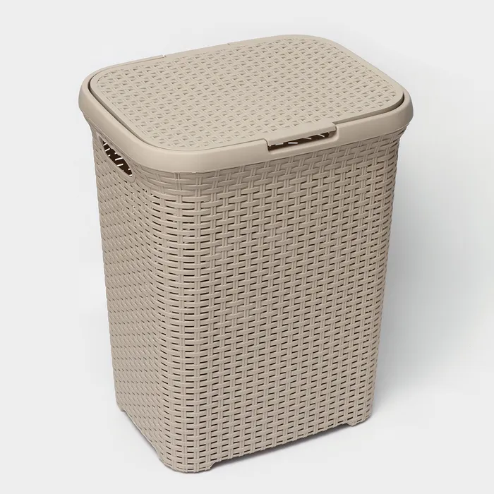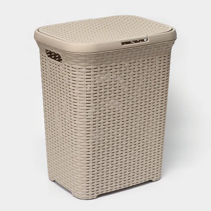 Корзина бельевая «Ротанг», 60 л, 34.6×44.5×56 см, с крышкой, латте