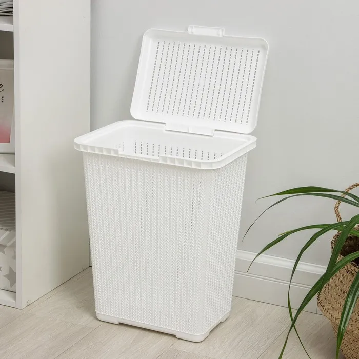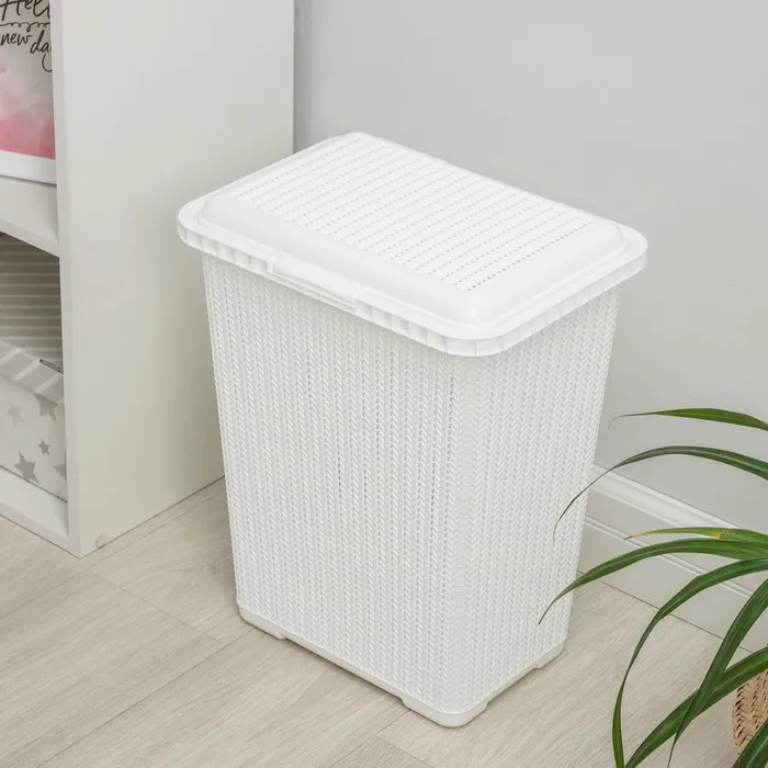 Корзина бельевая «Вязаное плетение», 25 л, 37×27,5×46,5 см, с крышкой, белая