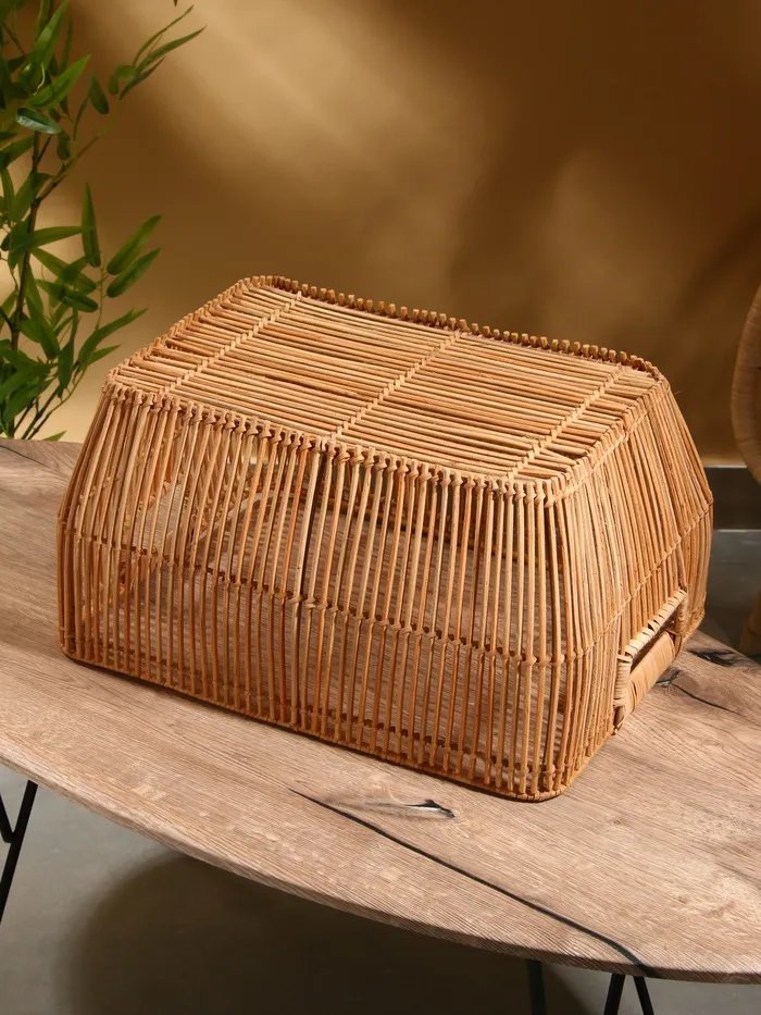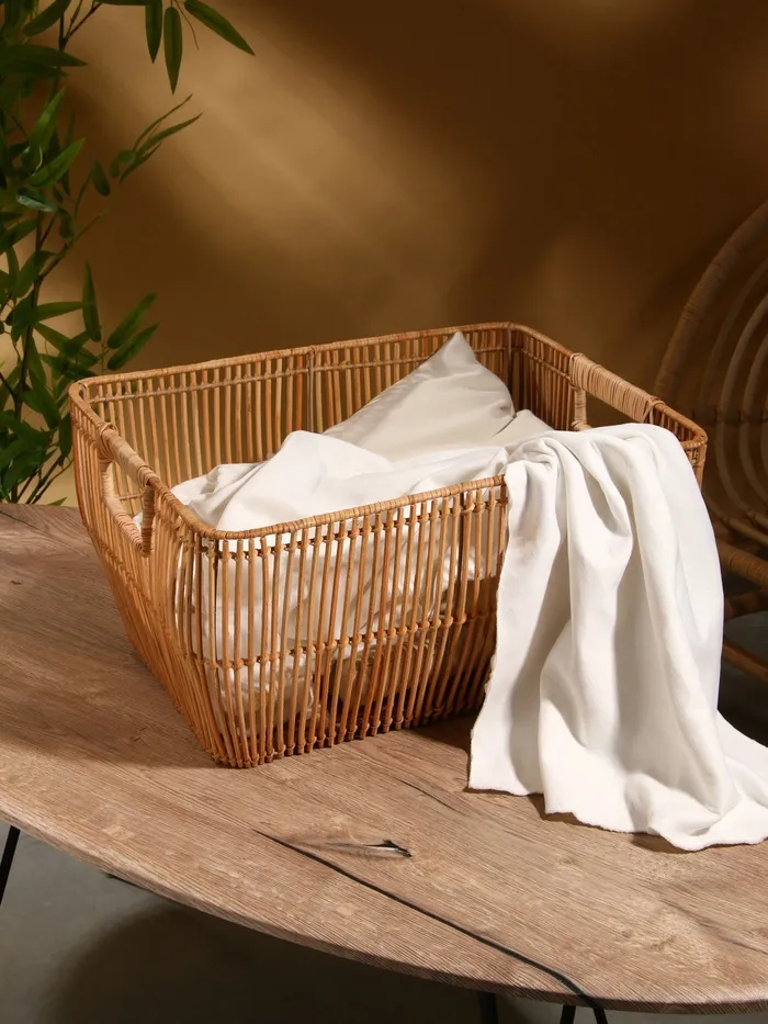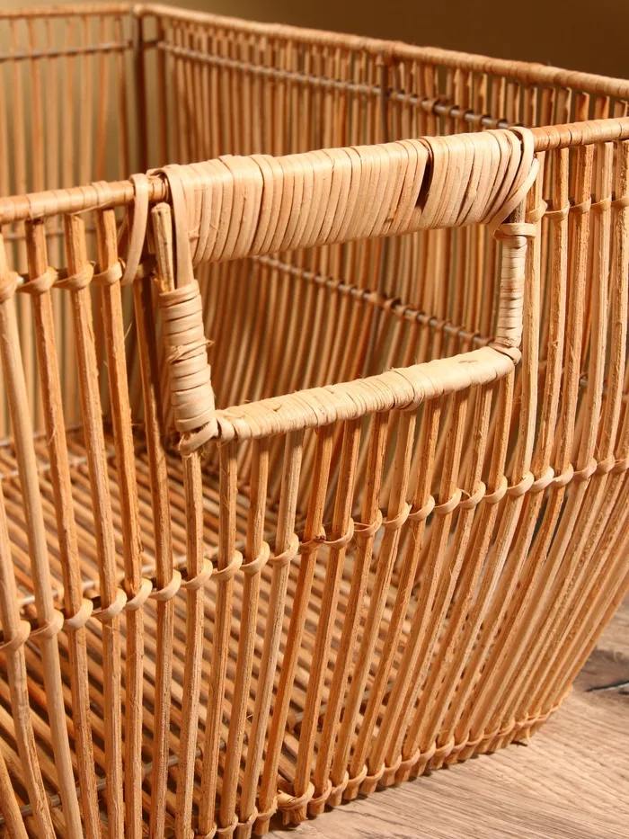 Ваш помощник в наведении порядка и уюта! Прямоугольная корзина для белья из натурального ротанга – практичное решение для аккуратного хранения одежды.