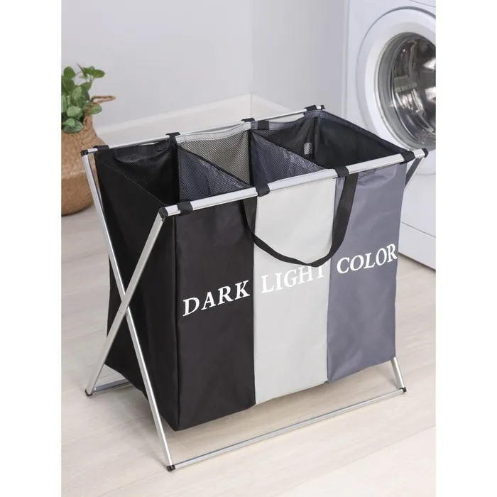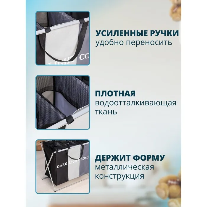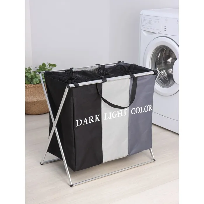 Корзина для белья Доляна Color, складная, тройная, 60×36×57 см — Характеристики