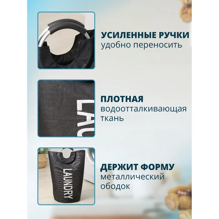 Корзина для белья Доляна «Модерн», с ручками, 30×58 см, чёрная — Характеристики