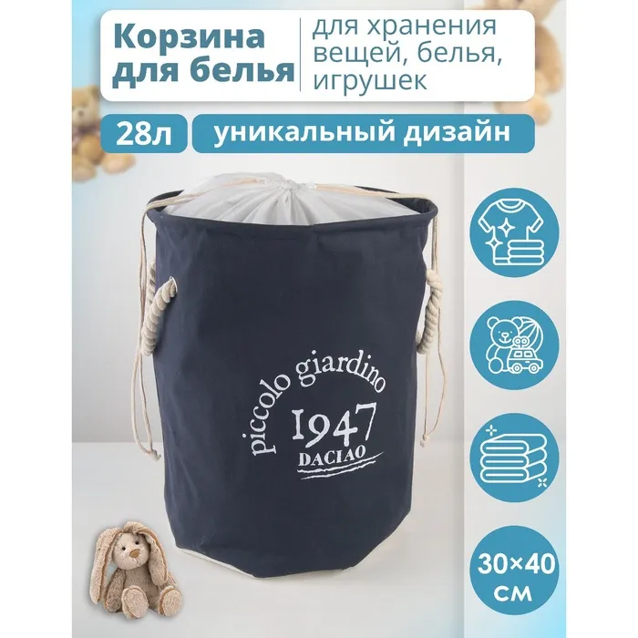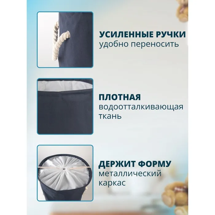 Корзина для белья Доляна «Пикколо», 30×30×40 см, с затяжкой, синяя — Характеристики