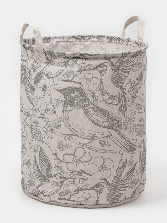 - Корзина выполнена из текстиля с привлекательным цветочным узором, что делает её не только практичной, но и стильной.