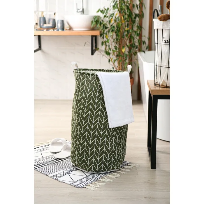 Корзина для белья Доляна «Зигзаг», 35×35×60 см, зелёная