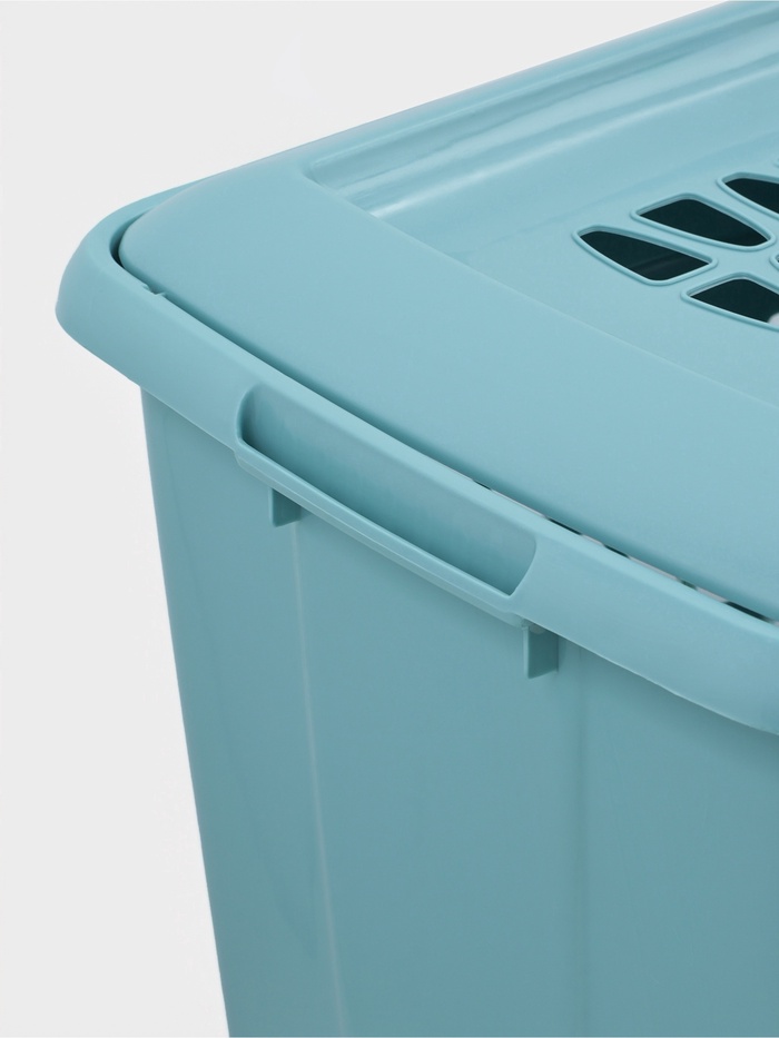 Корзина для белья «Молетта» — стильное и практичное решение для хранения грязного белья в ванной, прихожей или спальне. Её бирюзовый оттенок добавляет интерьеру лёгкости и свежести, а плотно закрывающаяся крышка надёжно скрывает содержимое и предотвращает распространение запахов. Прямоугольная форма и ручки с обеих сторон обеспечивают удобство при переноске и компактное размещение даже в небольших пространствах.