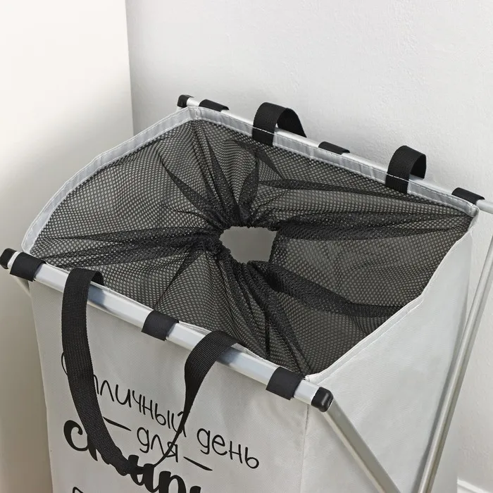 Корзина для белья складная Доляна «День стирки», 35×45 см, серая — Характеристики