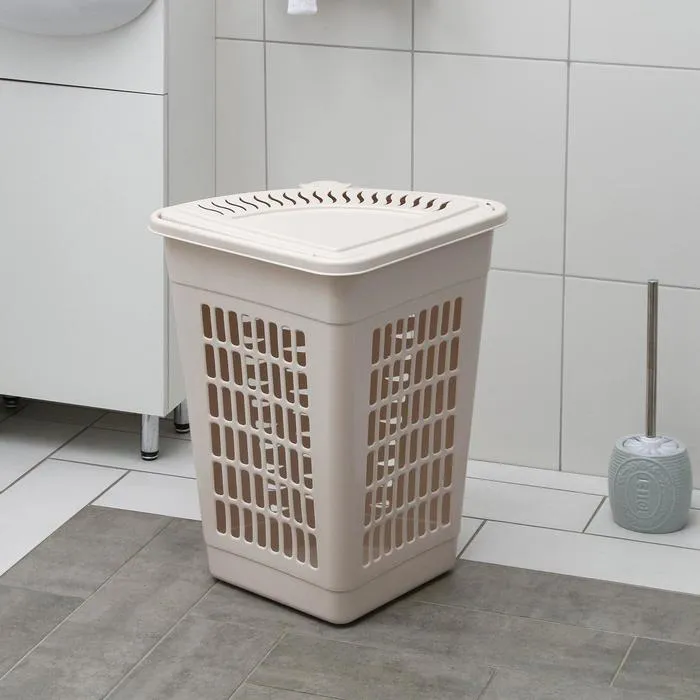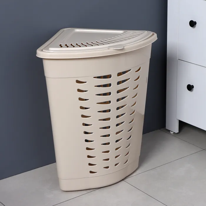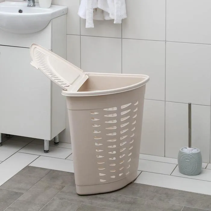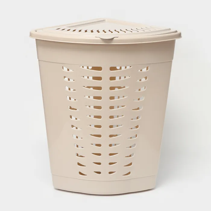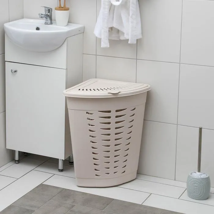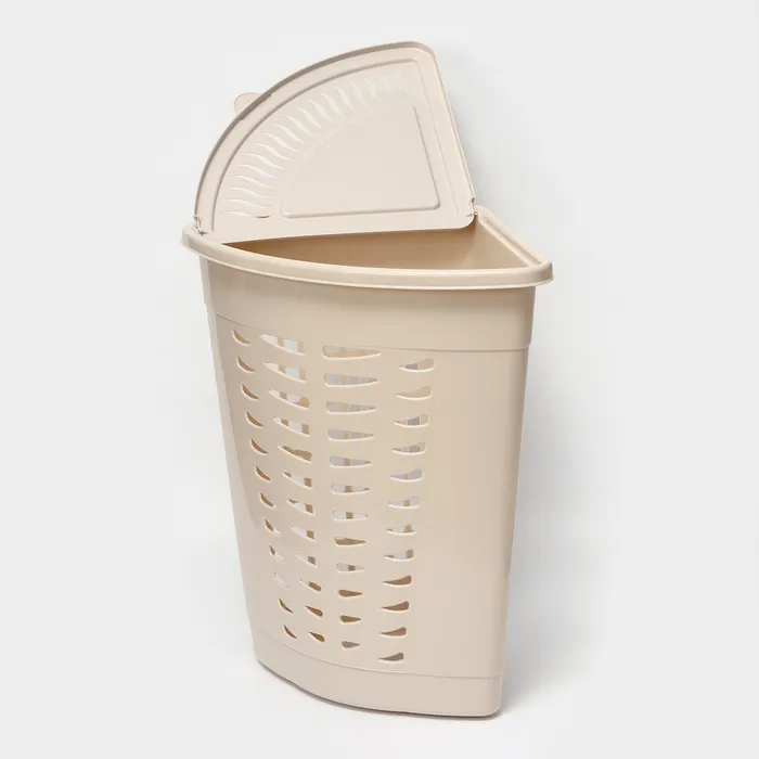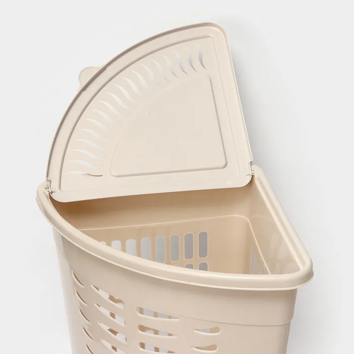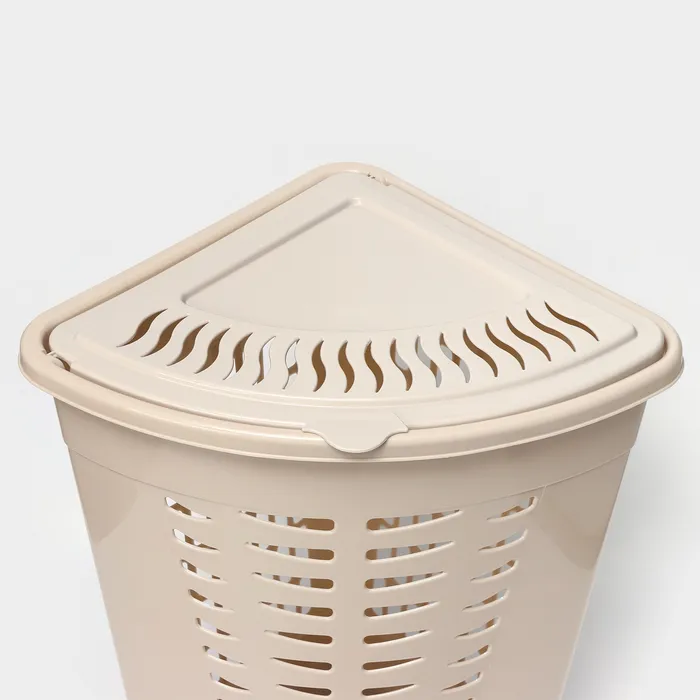 Корзина для белья угловая, 45 л, 37×50×56 см, с крышкой, слоновая кость