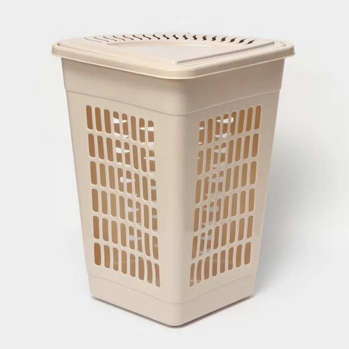 Корзина для белья угловая, 45 л, 37×50×56 см, с крышкой, слоновая кость — Характеристики