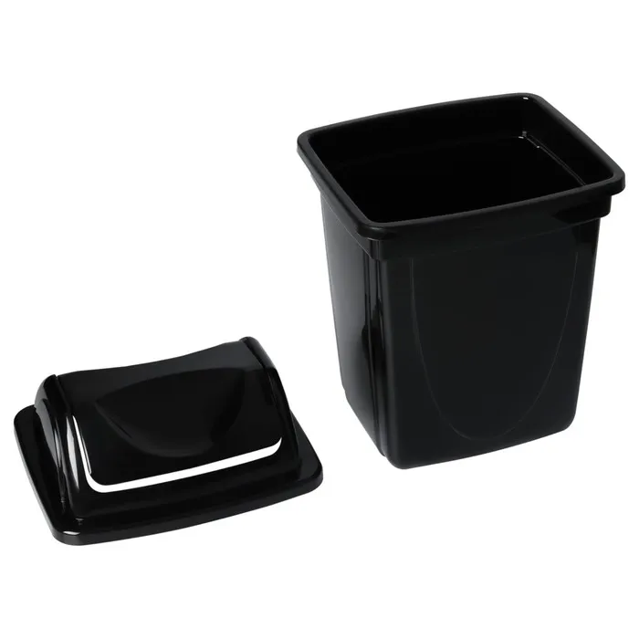 Корзина для бумаг и мусора Стамм, 12 литров, вращающаяся крышка, пластик, черная — Характеристики